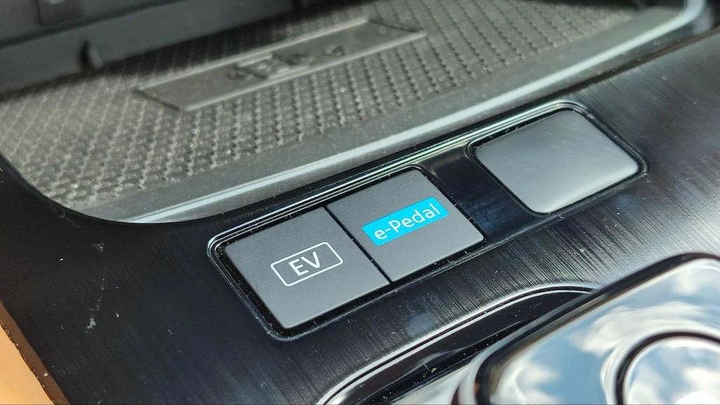 Кнопка e-pedal – это фишка электромобилей. Да она есть и у нашего гибридного X-Trail. Кстати алгоритм работы этой кнопки не совсем такой, как например у чисто электрического Leaf. У того вы можете управлять автомобилем всего одной педалью.