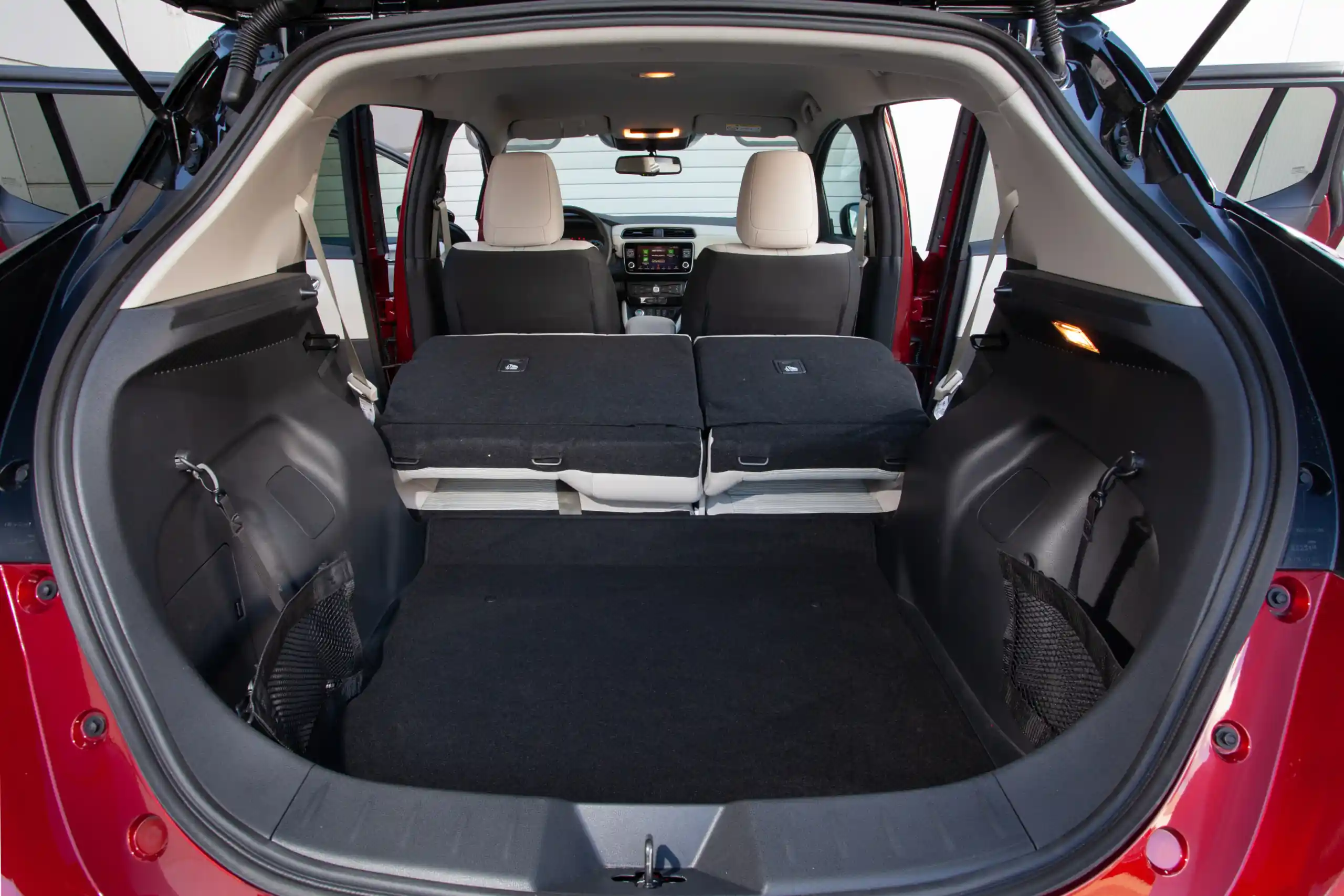 Хотя в полу скрытая батарея, и на объем багажного отсека это не повлияло. Он вместительный. По объему в 435 литров он лучше своих обычных конкурентов с бензиновыми и дизельными двигателями. В С-классе большинство конкурентов имеют багажник до 400 литров, в лучшем случае. Однако особенность багажника Лифа в том, что он достаточно глубокий. Груз надо высоко поднимать чтобы достать из багажника. Если сложить спинки задних кресел то размер отсека существенно увеличивается, хотя ровной поверхности и не получается. Однако, для городского хэтчбека это не так уж и важно.
