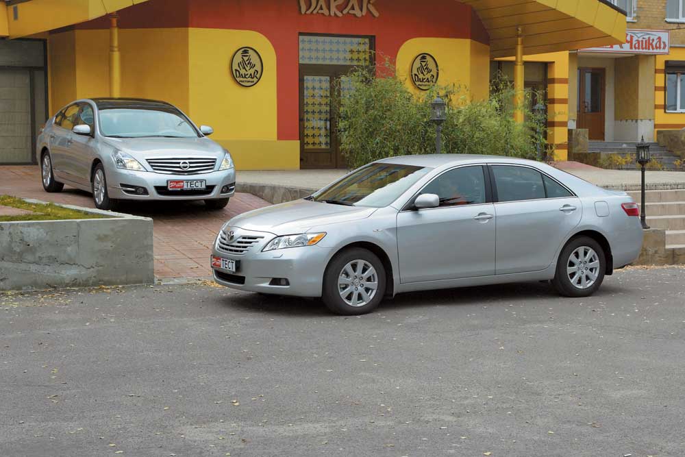 Первое поколение Nissan Teana, выпускавшееся четыре года, в этом году сменилось новой моделью. И хотя пропорции кузовов этих машин схожи, внешние и внутренние изменения глобальны. В то же время Toyota Camry в нынешнем облике знакома нам с 2006 года. Но популярность она завоевала, конечно, намного раньше.