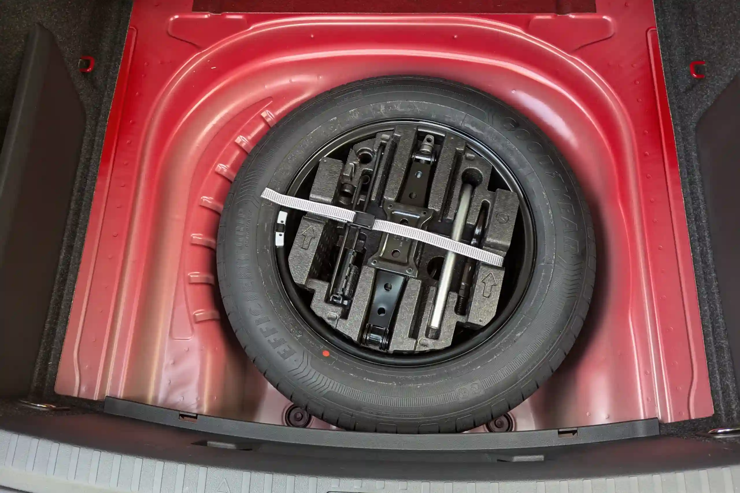 В нише под полом скрывается запасное колесо с органайзером для инструментов.