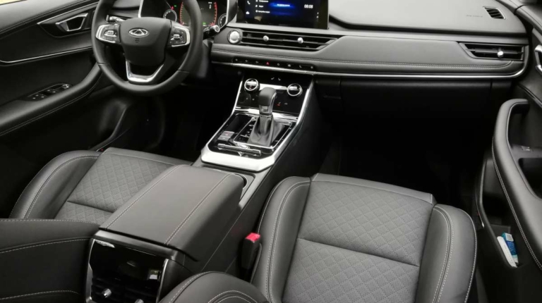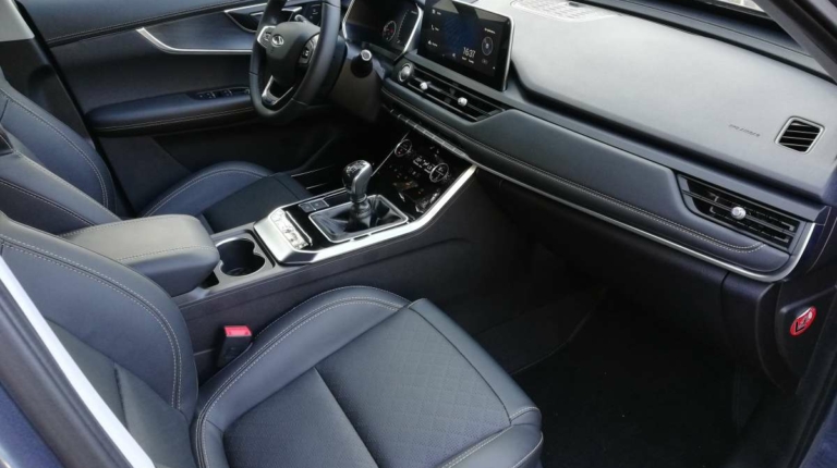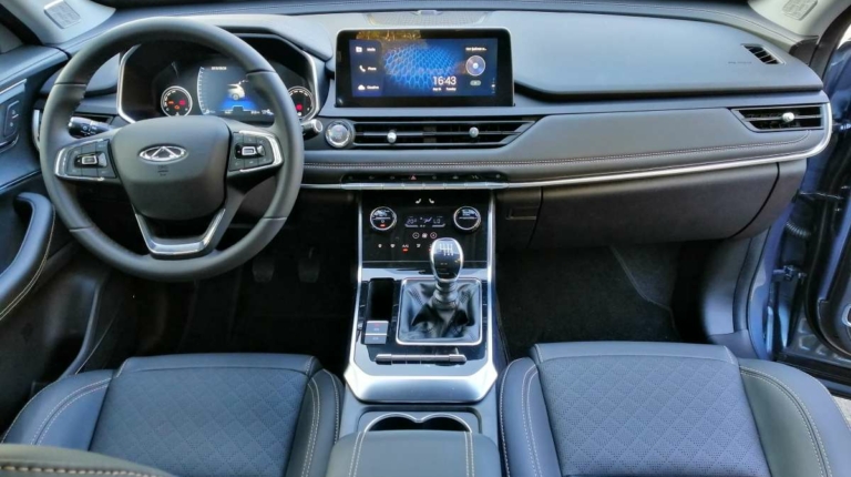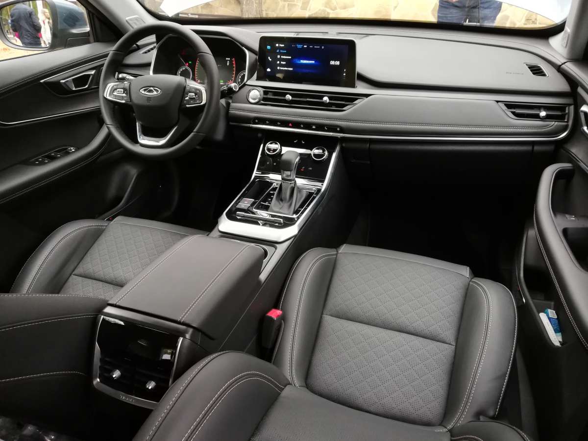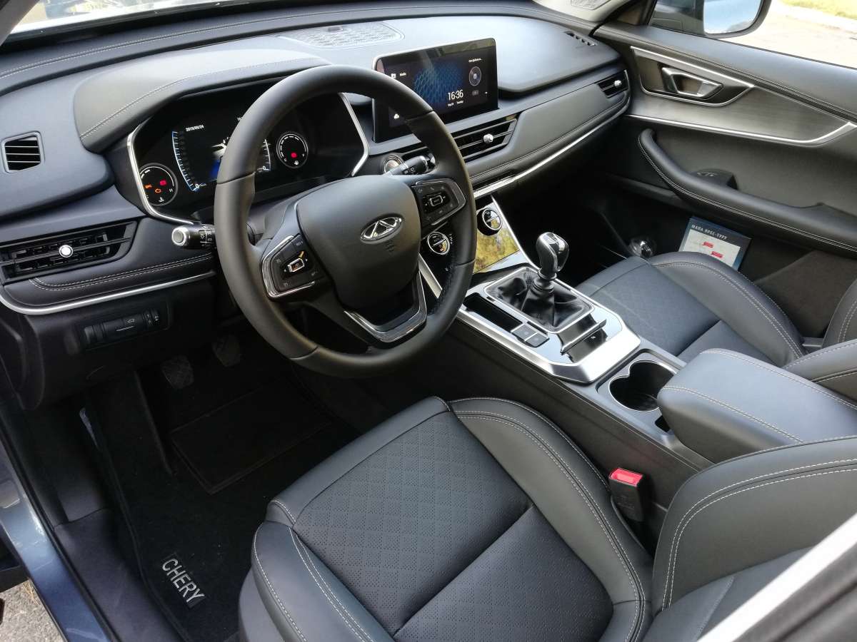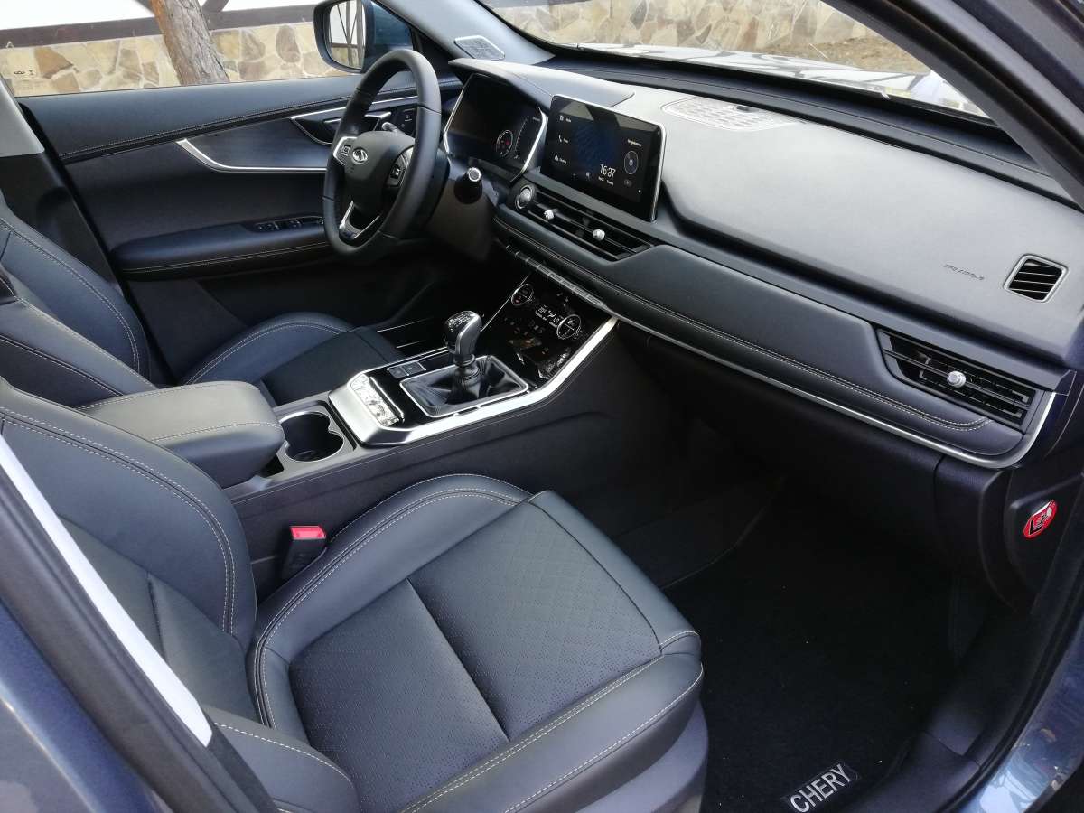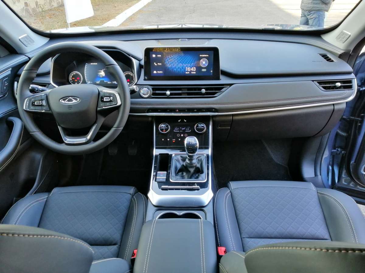 Вообще, садясь впервые в салон испытываешь приятное удивление. Лаконичная передняя панель, экраны мультимедиа и приборной панели (да-да, она полностью цифровая), гармоничный подбор материалов, кожаный салон. Тигго 8 явно умеет произвести впечатление! Единственным чужеродным элементом здесь выглядит рычаг “механики”. И не только потому, что словосочетание Luxury+МКП слегка странно само по себе, а и потому, что выпадает из общего стилистического ансамбля салона. Зато выбирая топовую комплектацию, за счет коробки передач можно сэкономить чуть более тысячи долларов. Мне на досталась именно такая модификация.