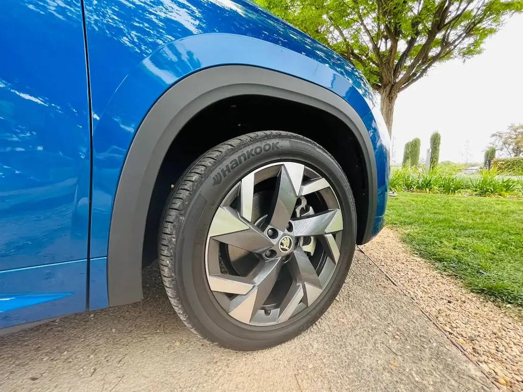 В противоположность воздержанию цветовой гаммы первого поколения модели у новинки появился новый цвет кузова – ярко-золотистый Bronx Gold Metallic. В нем Kodiaq смотрится отлично, особенно на новых 20-дюймовых колесных дисках. Чтобы профиль машины выглядел более легким и более стремительным, задняя кузовная стойка окрашена в цвет темный хром.