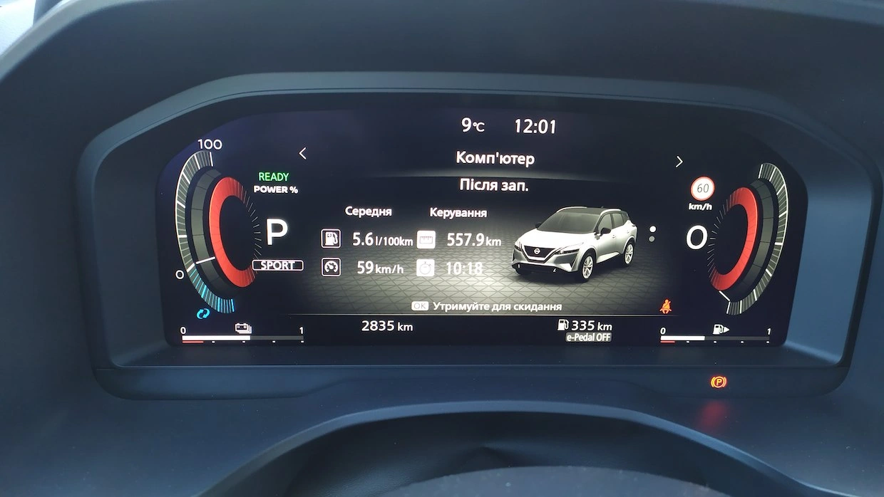 Схема последовательного гибрида очень эффективна с точки зрения экономичности и эффективности. К тому же она все равно хорошо показывает себя как в городе так и на трассе. Если обычный параллельный гибрид ест на трассе в среднем на 20-30% меньше чем в городе, то новый Qashqai e-Power просто не видит разницы между движением в городе и за его пределами. Расходы в городе обещают 5,2 л, а на трассе – 5,1 л/100 км. У нас за неделю теста на практике в смешанном режиме вышло 5,6л/100 км. При этом кроме городского трафика в тестовом цикле в равных частях был пробег по городу и на трассе.Интересно, что моменты, когда включается и выключается двигатель внутреннего сгорания, практически не слышны и не ощутимы. Инженеры неплохо поработали как над шумо-, так и над виброизоляцией. Ведь не надо забывать, что двигатель имеет нечетное количество цилиндров, поэтому по умолчанию не такой сбалансированный как 4-цилиндровые аналоги. Интересно что хотя у машины и небольшой объем топливного бака в 55 л, но с такими затратами горючего запаса хода электрифицированного Qashqai более 1000 км на одной заправке.