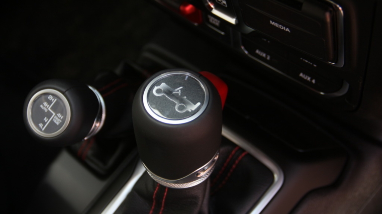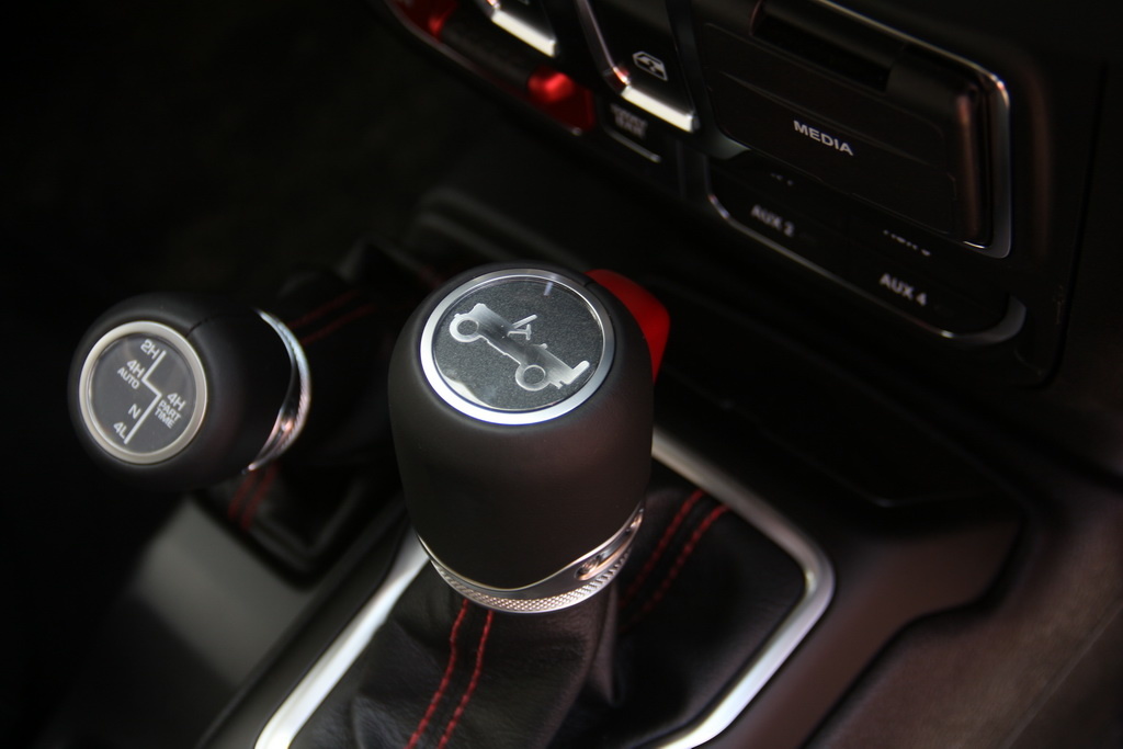 Впрочем, Wrangler в первую очередь внедорожник. В тестируемой версии Sahara имеется ряд пониженных передач и несколько режимов полного привода. Для так называемых «повседневных сложностей» пригодится режим «4х4 AUTO», когда крутящий момент постоянно распределяется между осями. Для бездорожья подойдет режим «4×4 PART TIME», он обеспечивает жесткое распределение момента между осями в пропорции 50:50. При желании можно принудительно заблокировать межосевой дифференциал. В нашей, так называемой, «гражданской» комплектации Sahara, дорожный просвет составляет 235 мм. Угол въезда равен 36,4°, а съезда – 30,8°.