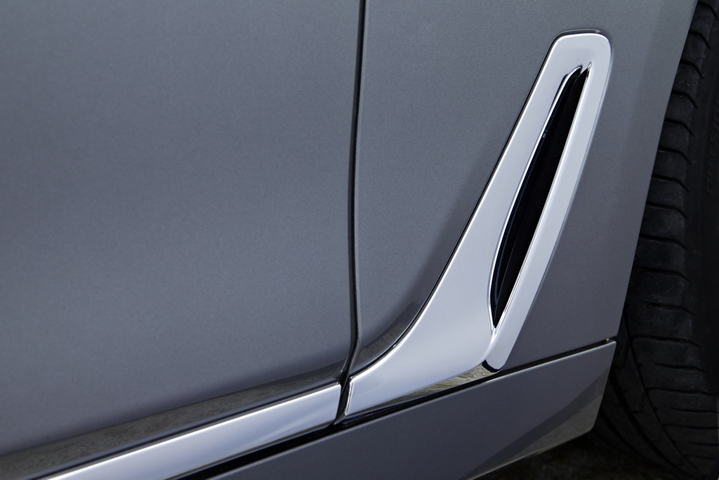 Но самым оригинальным декоративным элементом экстерьера я бы назвал «клюшку для гольфа» – накладку, которая тянется по нижним кромкам дверей. Она поддерживает сбалансированный облик и визуально низкий центр тяжести авто, а еще маскирует воздуховод Air Breather. Аналогичные (Air Curtain) используются и в переднем бампере. А сообща они формируют плоскую воздушную струю вокруг колеса и снимают напряжение в арке.
