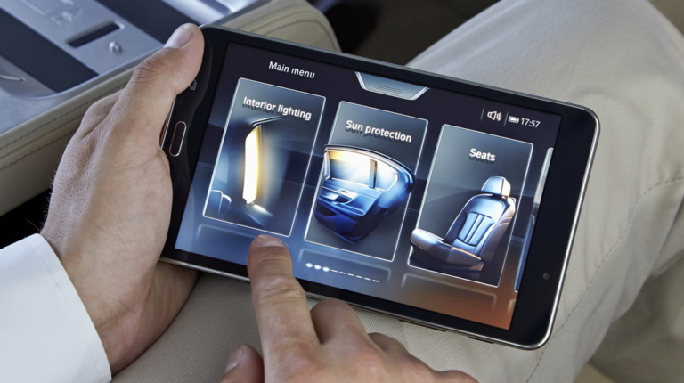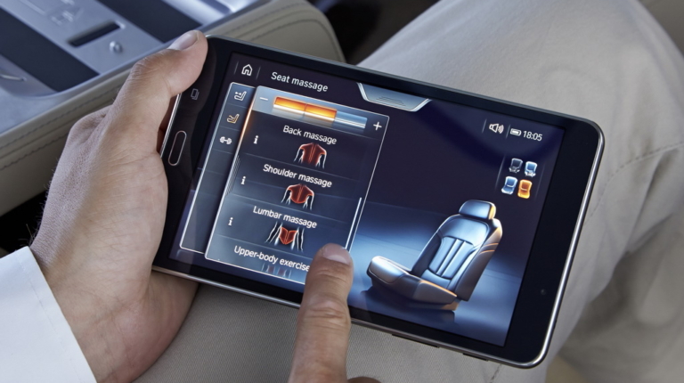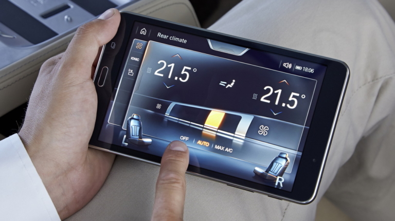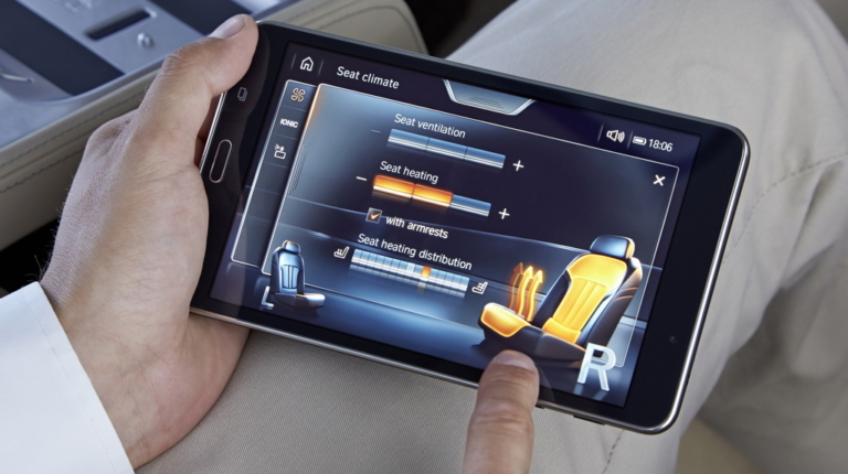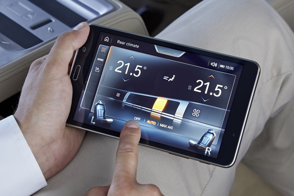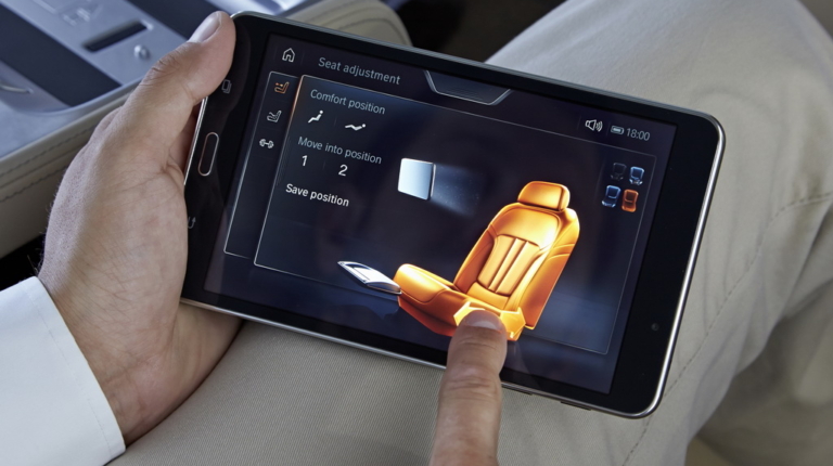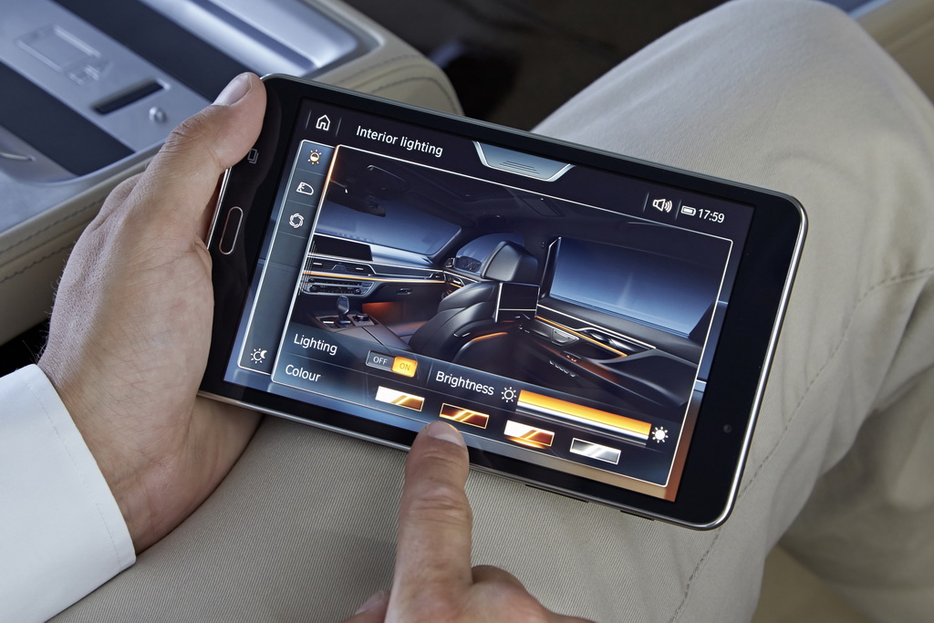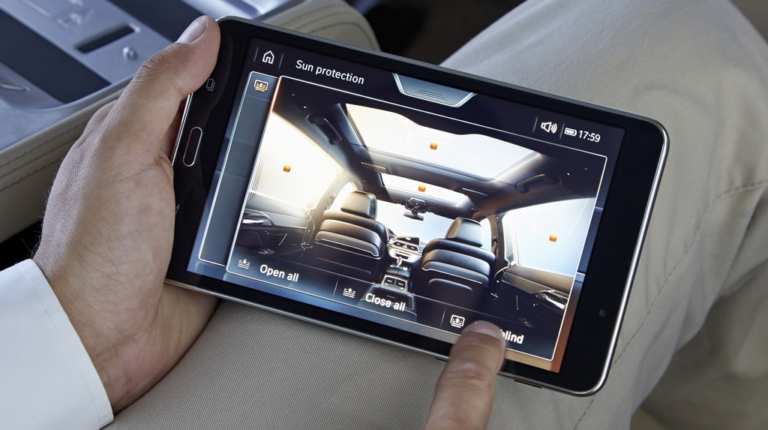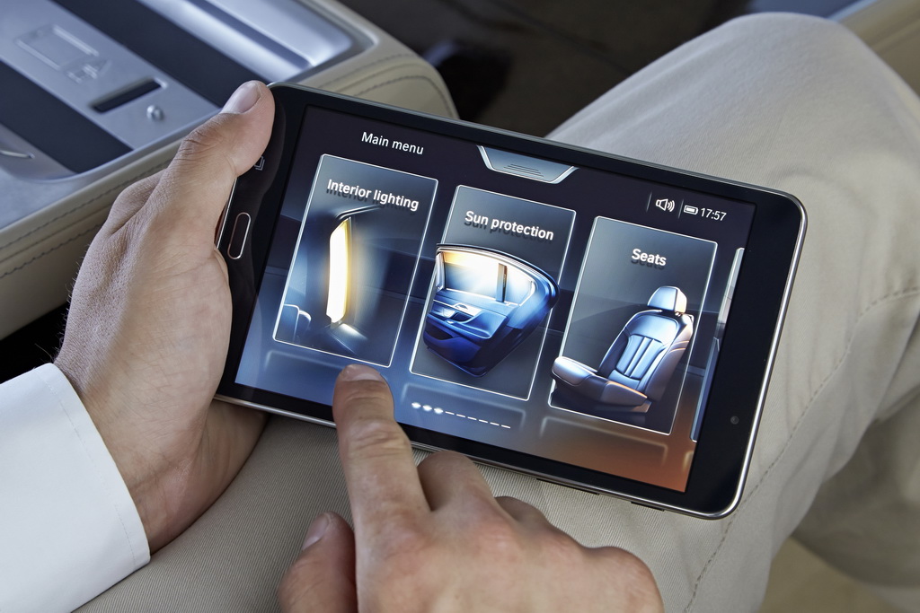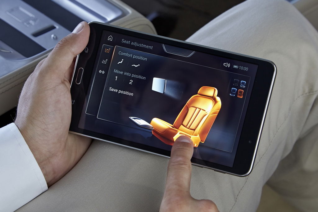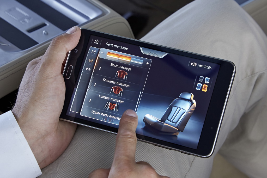 Через Wi-Fi это устройство связано с различными системами «семерки». Так что с его помощью я легко регулирую все три сиденья (два задних и переднее пассажирское), управляю массажем, вентиляцией и подогревом кресел, фоновым освещением салона, солнцезащитными шторками на панорамной крыше и на окнах в задней части салона (боковых в дверях и на заднем стекле), навигацией и развлекательными функциями.