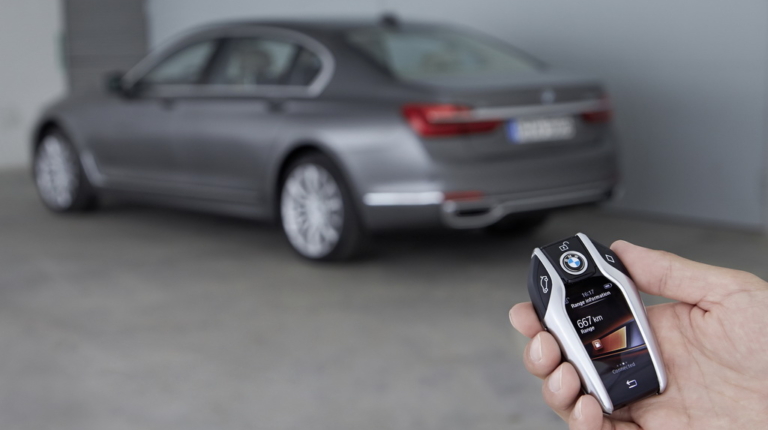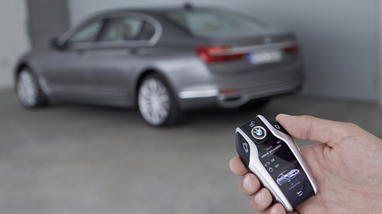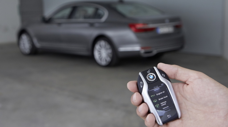 Еще немного времени, и такой ключ позволит звонить, делать фотографии и общаться в социальных сетях. Но уже сегодня он дает возможность заводить машину в гараж или на парковку и выводить ее назад, стоя рядом. И эта опция в Украине тоже доступна, хотя для нашей машины и не заказана.