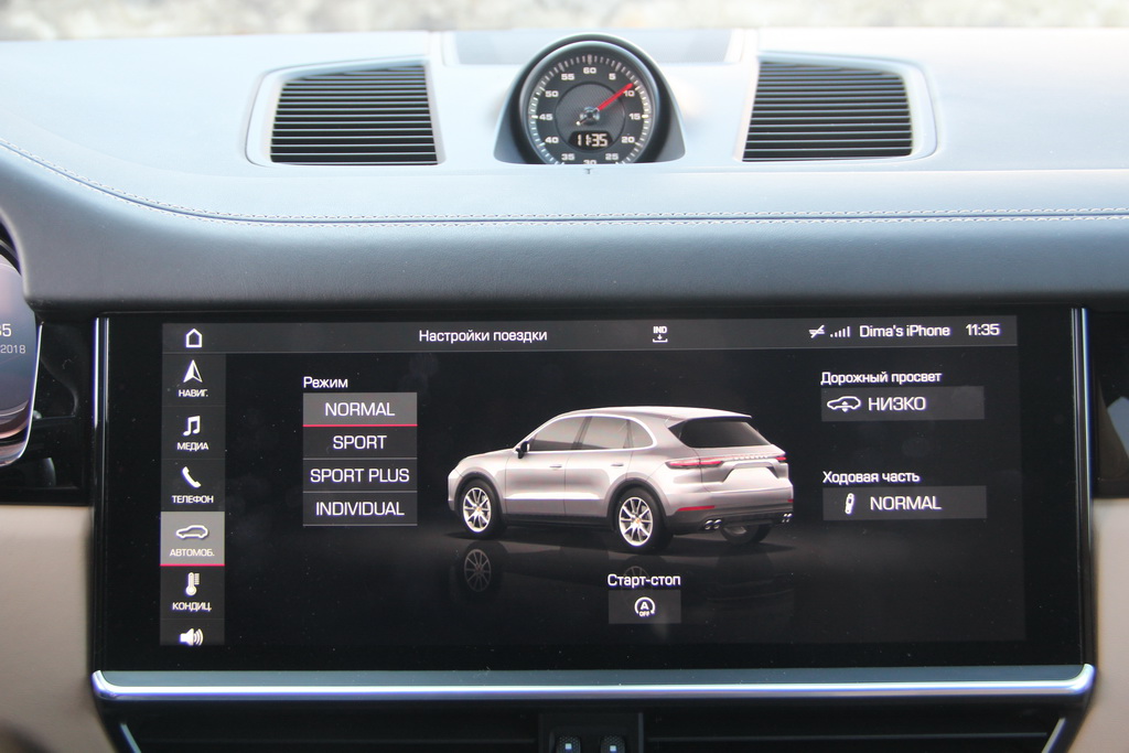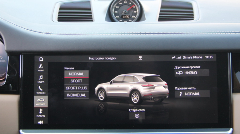 Сенсорный экран заменил собой и блок управления полным приводом. Достаточно просто выбрать тип покрытия, а Porsche Cayenne уже сам решит, на какую высоту отрегулировать дорожный просвет, какую муфту и на сколько заблокировать.