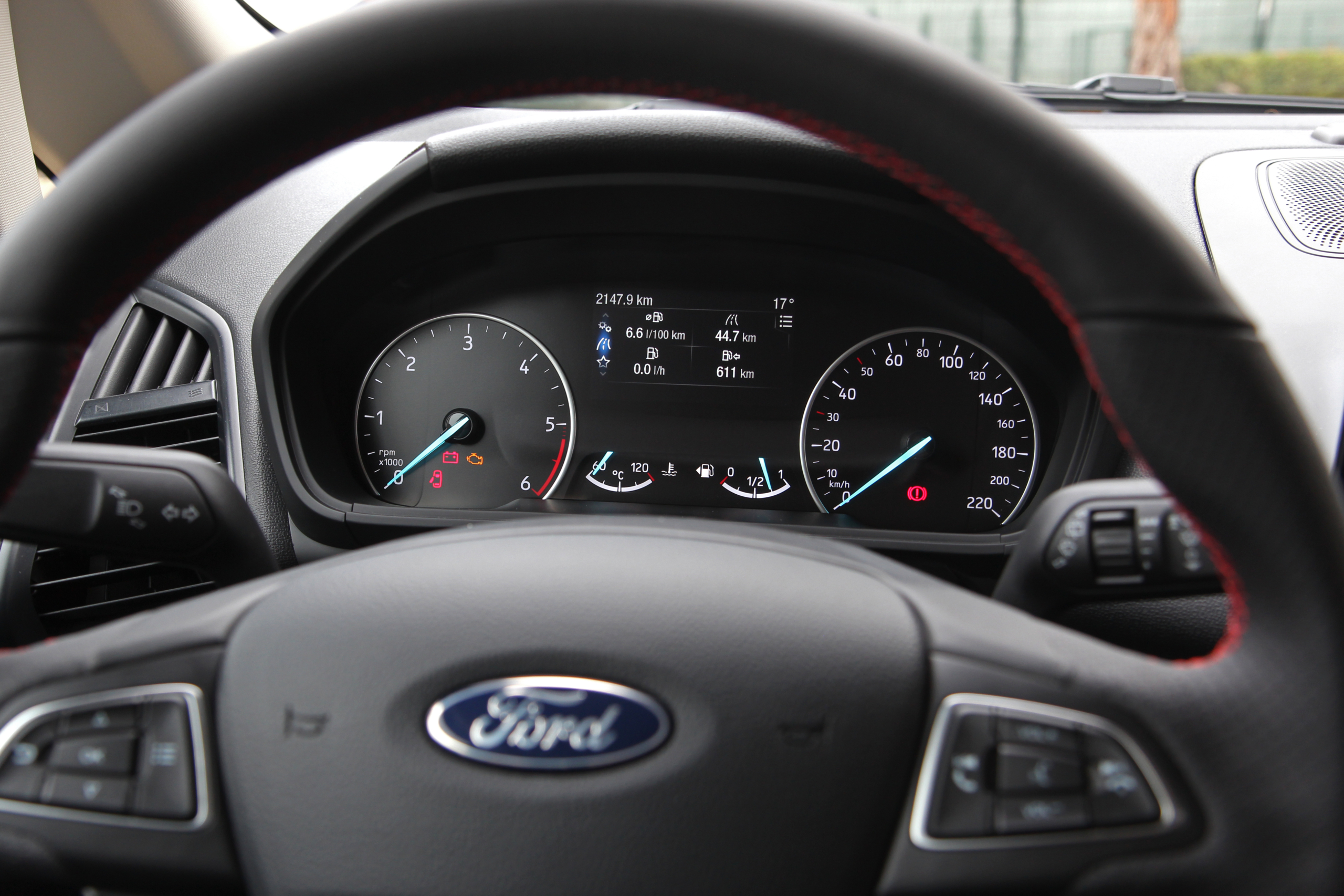 Выставленные для тест-драйва были в максимальных комплектациях, могли похвастать перечнем опций и к тому же щеголяли насыщенными синим и красным цветами, а также комбинированной окраской. Для Titanium предложены два цвета кузова, а для ST-Line четыре. Да-да, вы не ослышались, будет теперь и такая версия! Вот почему на выбранном мною для теста экземпляре такие фактурные бамперы и накладки на порогах, выкрашенные в цвет кузова.