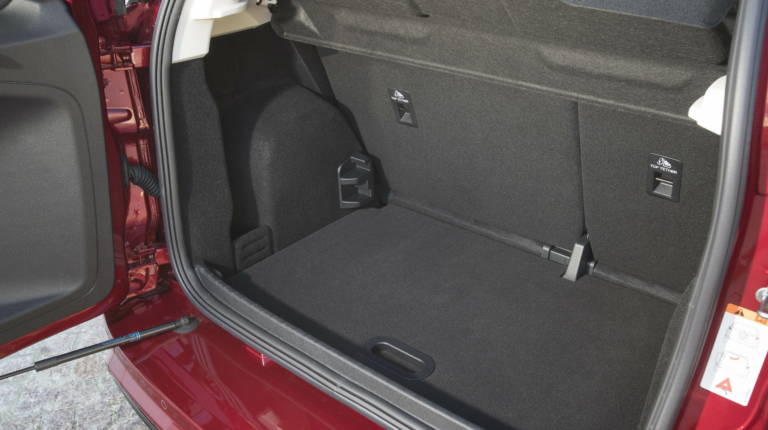 Багажник в объёме не изменился – 334 литра с опущенным фальшполом. Неизменной осталась и конструкция распашной двери с замаскированной в правом фонаре ручкой. Для людей несведущих можно даже квест устраивать! Решение открывать пятую дверь в сторону не ново, но и в то же время не самое удачное. Для ее распахивания требуется пространство, а вещи, готовящиеся на погрузку, должны стоять в стороне. Смутил и широкий порог, через который придется переносить вещи, с большой долей вероятности его поцарапать. Что касается упомянутого вначале теста кожуха запасного колеса, то теперь это опция. И стоит помнить, что без нее (опции) запаски как таковой у вас не будет – под переставным фальшполом под это нет места.