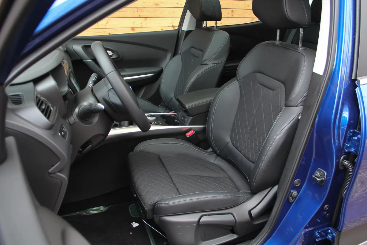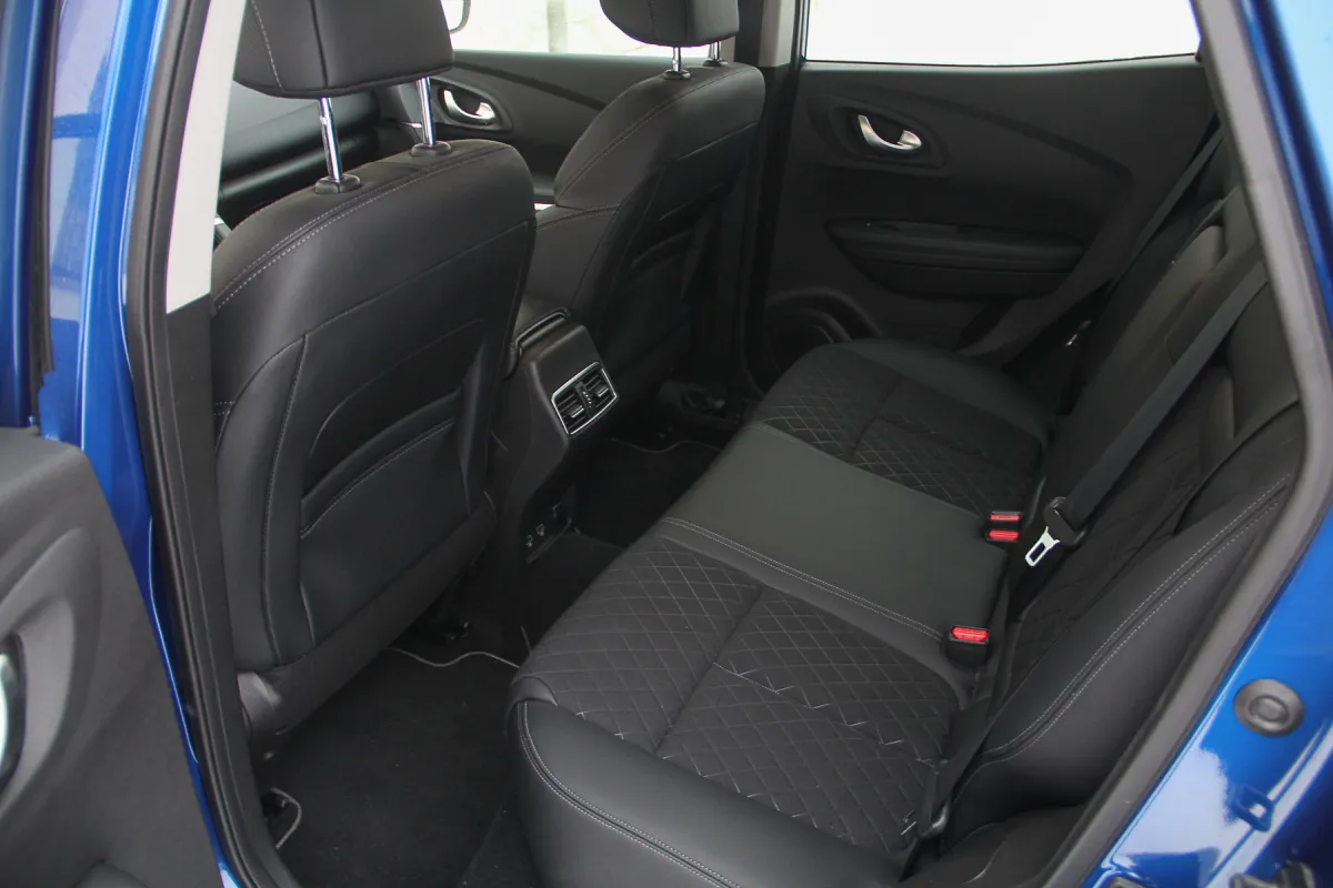 Но и в нашем Каджаре передние кресла не промах. У них появилась выдвижная секция подушки (он же подпор под колени), а отделаны они кожей и тканью, стеганной ромбиком. Сейчас это модно! Боковая поддержка подобрана удачно и способна принять пассажиров различной комплекции. Перед водителем – знакомая цифровая панель приборов, которую при желании можно настроить по своему усмотрению. Вот только ни интерфейс, ни логику настройки экранов (приборки и мультимедиа) не меняли, и она все так же несколько запутана. К тому же, я не перестаю удивляться подбору цветовой гаммы подсветки. Ну хорошо, насыщенно-бежевая или синяя палитра. Но кто выберет ярко-красную или фиолетовую? А вот нажимая на сенсор экрана понимаешь, что он изменился, и в лучшую сторону – стал работать четче, отзывчивее.