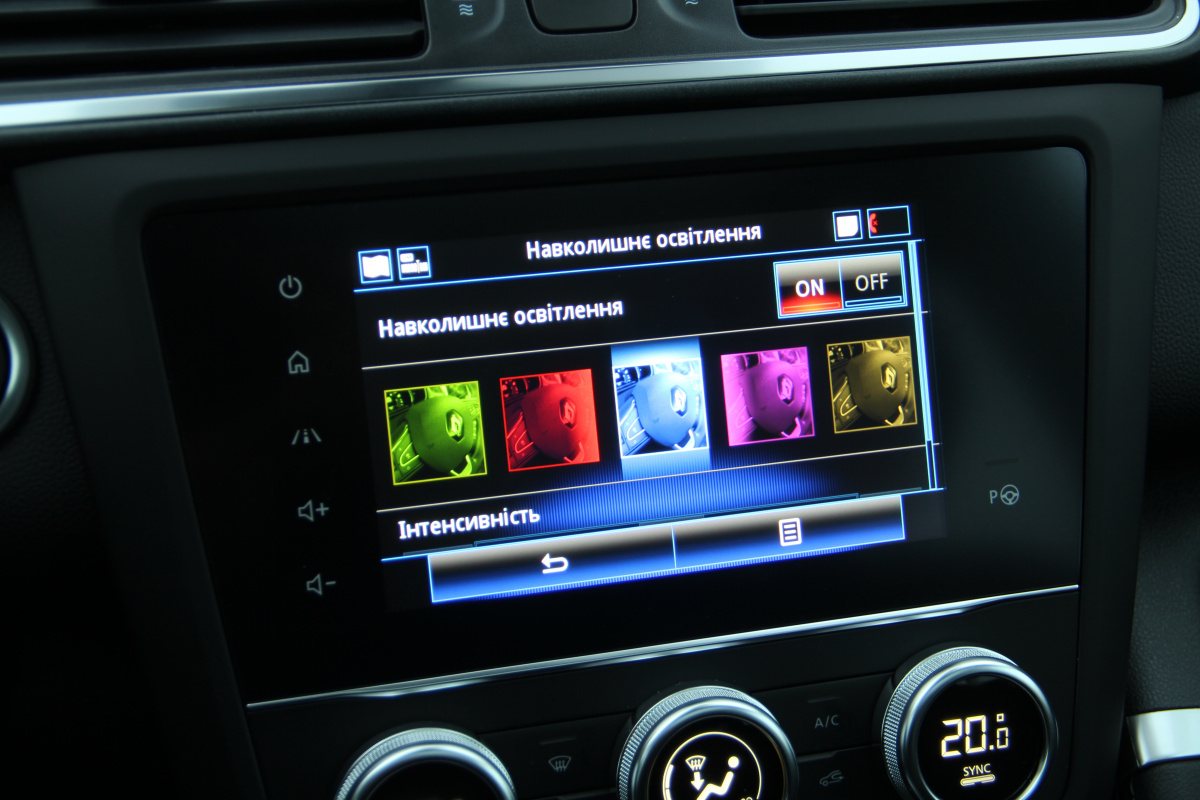 В базовой комплектации Life этого, правда, видно не будет, потому как там обычный кондиционер и простенькая аудиосистема. Но со второго уровня оснащения (Zen) R-Link 2 можно заказать за доплату в 20 545 грн. В нашей тестовой комплектации Intense она идет уже в базе. Кстати, Intense на сегодня не самый “топ”, в его роли – Black Edition. Такая версия будет отличаться главным образом по салону, и сможет похвастать обивкой сидений из алькантары и их электрорегулировками (водительского).