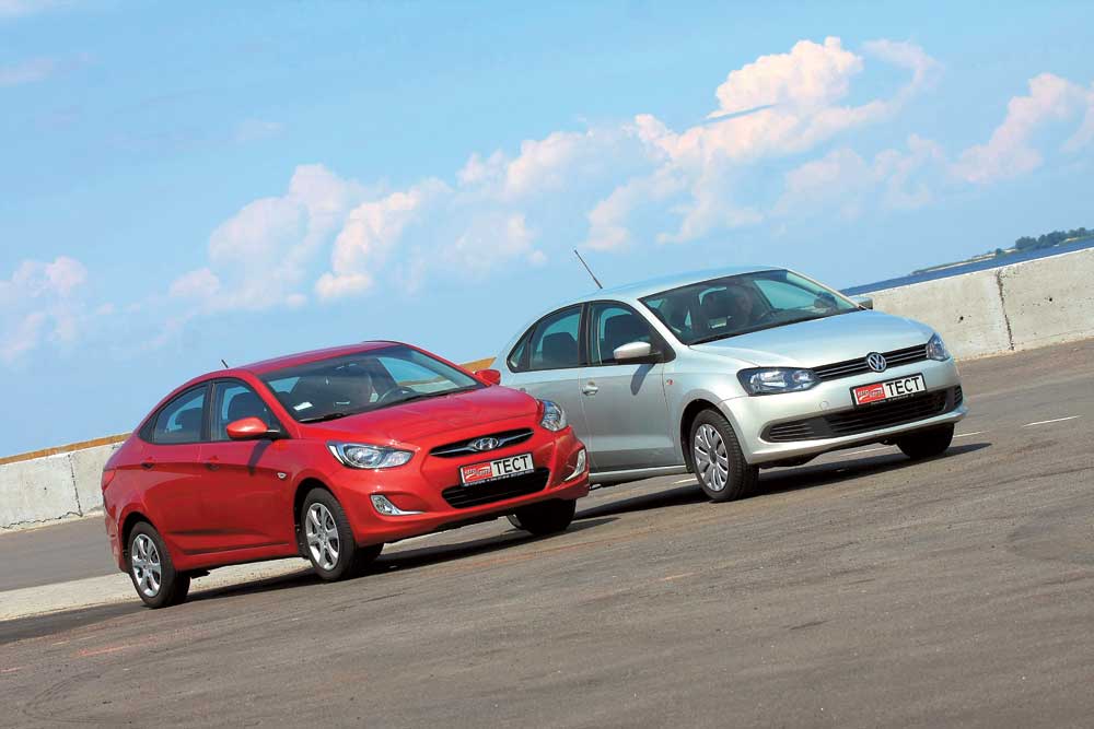 Лидер класса – седан Hyundai Accent исповедует восточную философию и демонстрирует современный корейский подход. Со своей задачей – привлечь покупателя яркой внешностью, подкупить хорошим оснащением, убаюкать комфортной ездой и успокоить длительной гарантией – он справляется отлично. В то же время Volkswagen Polo Sedan со своей западной моделью, являющейся полной противоположностью, по продажам наступает «Акценту» на пятки, хотя и не стремится вызвать интерес яркой оберткой. Он доказывает серьезность своих намерений сдержанностью во внешности, позволяет самостоятельно выбирать многие опции и не накладывает ограничений по гарантийному пробегу.