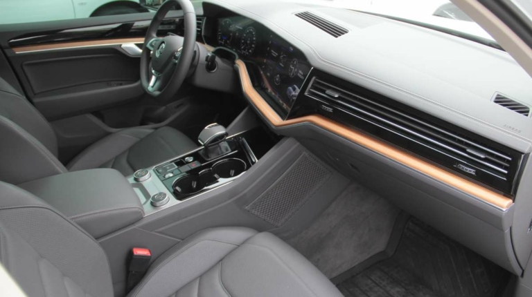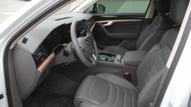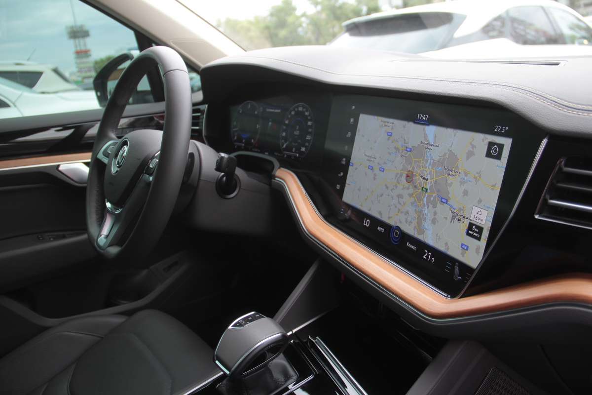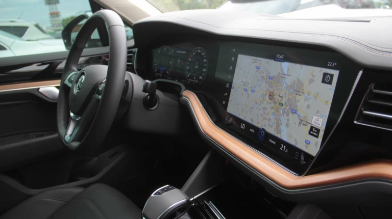 Ведь первую сотню турбодизельный Touareg (286 л.с., 600 Н/м) набирает за 6,1 секунды. Это очень быстро по меркам даже легковых авто, а тем более крупных кроссоверов. И конечно же, пневмоподвеска! Это настолько полезная штука для наших дорог и она настолько облегчает езду для водителя! Плюс здесь машину можно еще приподнять и вообще не бояться никаких ям – это очень круто! Мне по душе, что автомобиль оснащен немалым количеством электронных ассистентов. Здесь и адаптивный дальний свет (полностью светодиодный), система удержания в полосе, система фронтального контроля, помощь при парковке и другие. И хотя я все люблю держать под контролем, такой набор систем может выручить! Ну и конечно же, цифровая панель приборов и центральный, просто огромный дисплей (его диагональ 15 дюймов) смотрятся великолепно! Причем в первую очередь, с точки зрения эстетики – дизайнеры очень красиво вписали их в переднюю панель. Плюс к этому, не надо всматриваться в цифры и показания – все отлично видно! И управлять этим планшетом приятно. А еще дерево – его вставки придают настоящий домашний уют.
