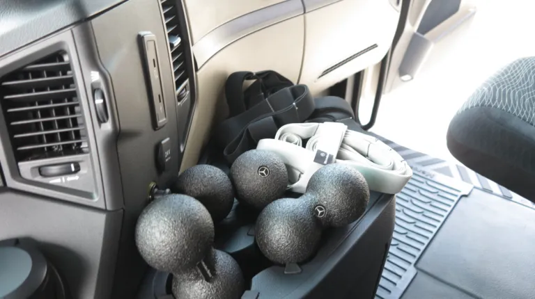 Недолго думая, мы выбрали 510-сильный Actros c cамой просторной кабиной Gigaspace. Перед поездкой инструктор ознакомил с новым многофункциональным ключом, с помощью которого можно не только дистанционно открывать двери, но и управлять наружным освещением с расстояния до 50 метров.