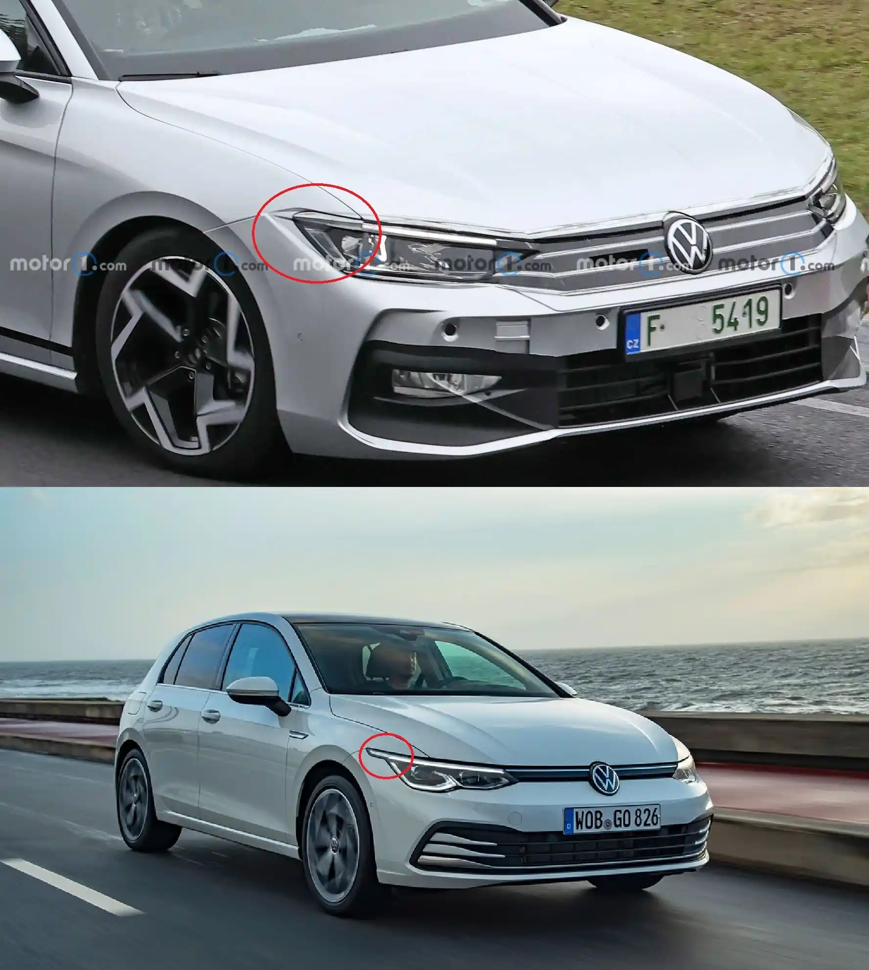 Помимо этого, как бы сильно в Volkswagen не пытались скрыть любые подробности, мы можем видеть абсолютно другие передние фары. Если присмотреться на их уголок, под имитацией угла фары от предыдущего поколения можно увидеть "ресничку", уходящую в сторону крыла, точно так, как у нового Golf 8.