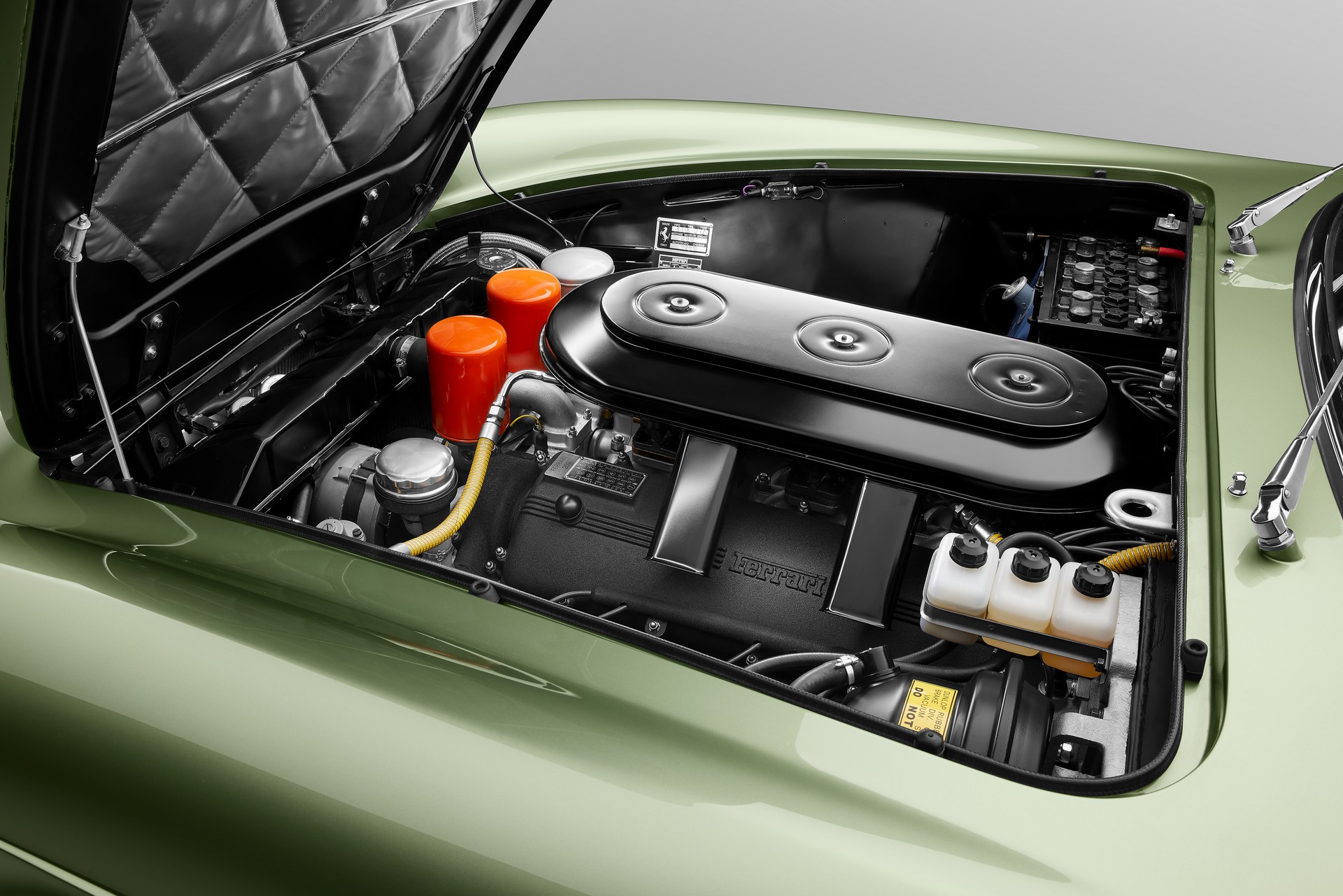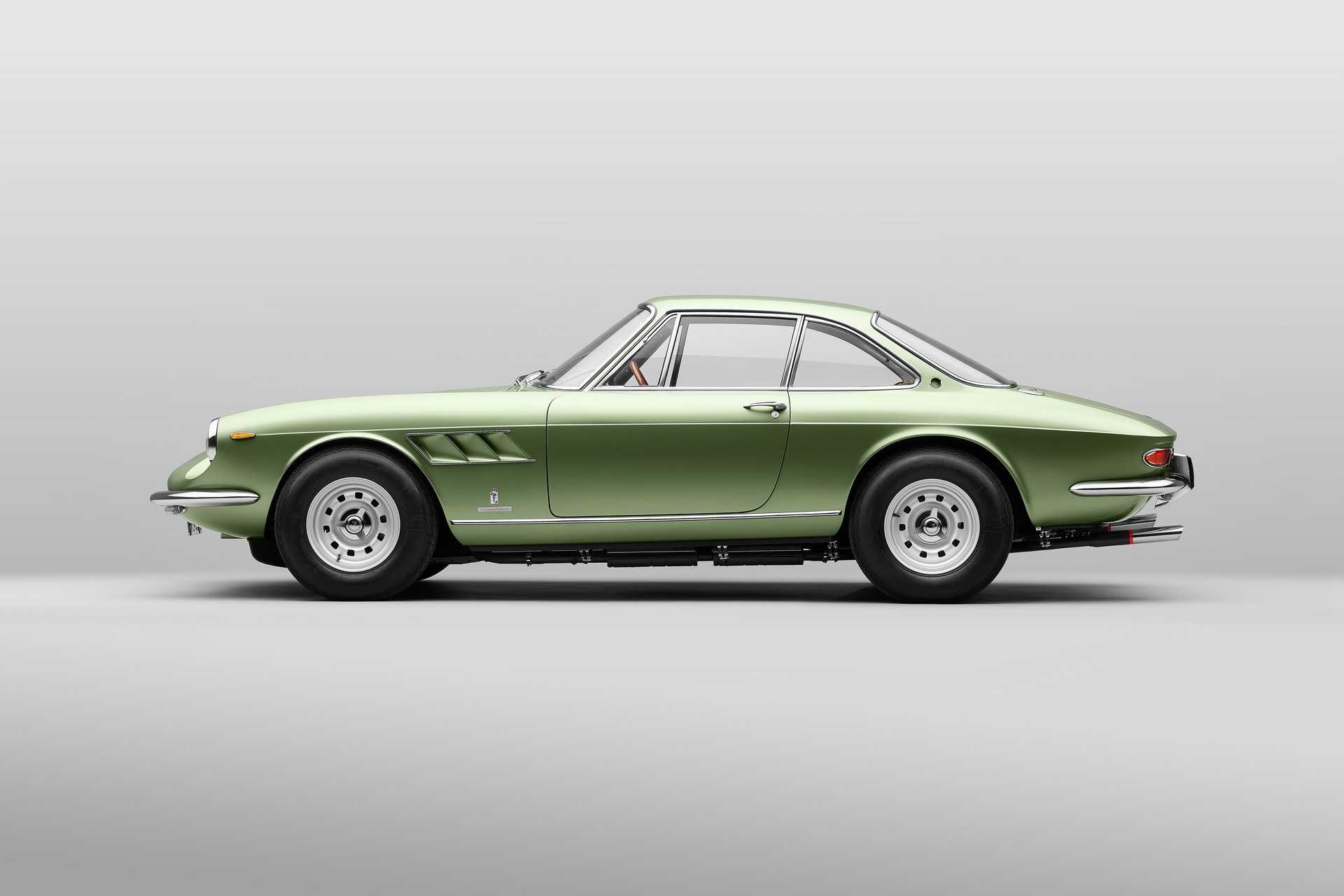 Также им удалось найти оригинальный оттенок, в который Ferrari 330 GTC был окрашен производителем. Это великолепный светло-зеленый Verde Chiaro Metallizato. Он идеально сочетается с хромированными вставками и серебристыми колесными дисками.