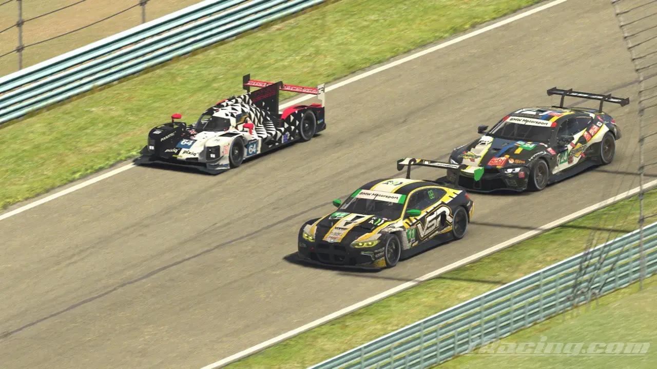 Первым дивизионом стартовали сверхмощные прототипы, затем «наш» класс GTE и дальше менее мощные авто. На карте автодрома каждый класс авто было выделено своим цветом. Итак, через 10-15 кругов все цвета перемешались и зрители наблюдали за разноцветной мозаикой, посреди которой где-то было и наше BMW M8.
