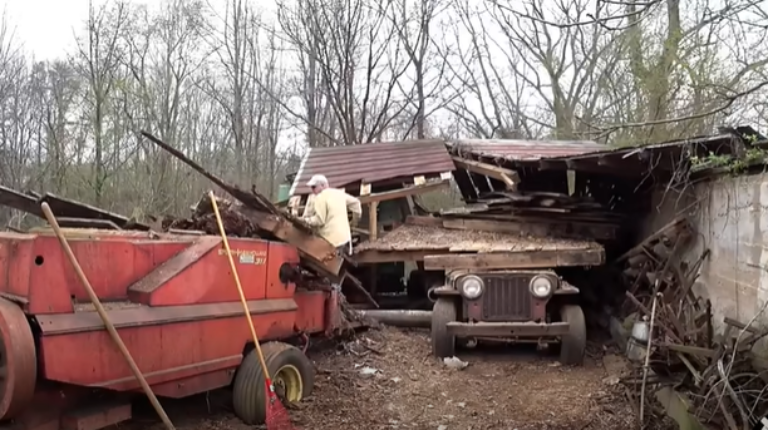 Внук владельца фермы вместе со своим сыном решили забрать и восстановить культовый джип. Но их ждал неприятный сюрприз. Сарай, в котором находился Willys, обрушился. Для того, чтобы освободить машину, мужчинам пришлось убрать бревна, доски, металлические трубы, мотки колючей проволоки и другой хлам, который преграждал доступ к авто.
