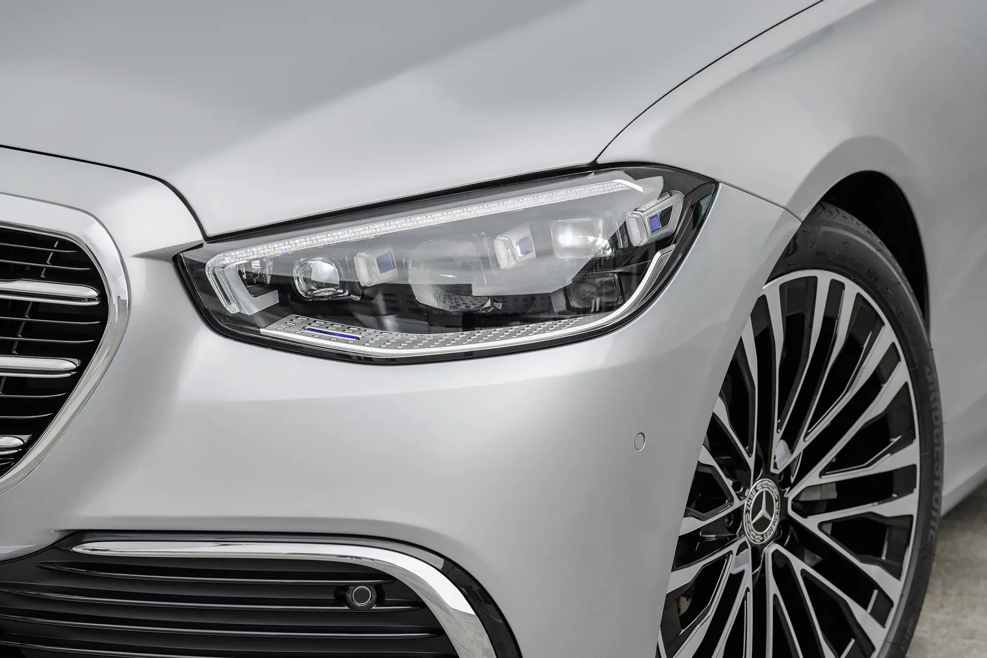 Благодаря короткому переднему свесу, длинной колесной базе и небольшому заднем свесу, S-Class выглядит как классический седан с идеальными пропорциями. Умело контурированные поверхности, словно в высеченной из камня скульптуры, создают особые световые эффекты. Передняя часть автомобиля отличается крупной решеткой радиатора и меньшей, чем у предшественника головной оптикой.