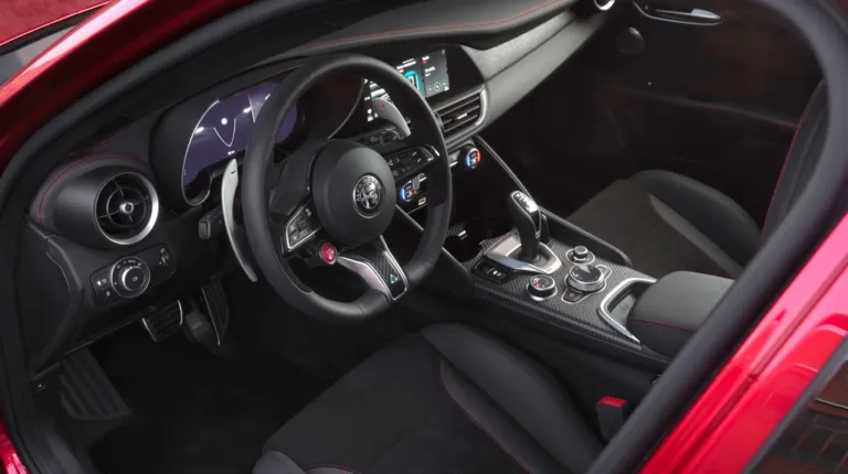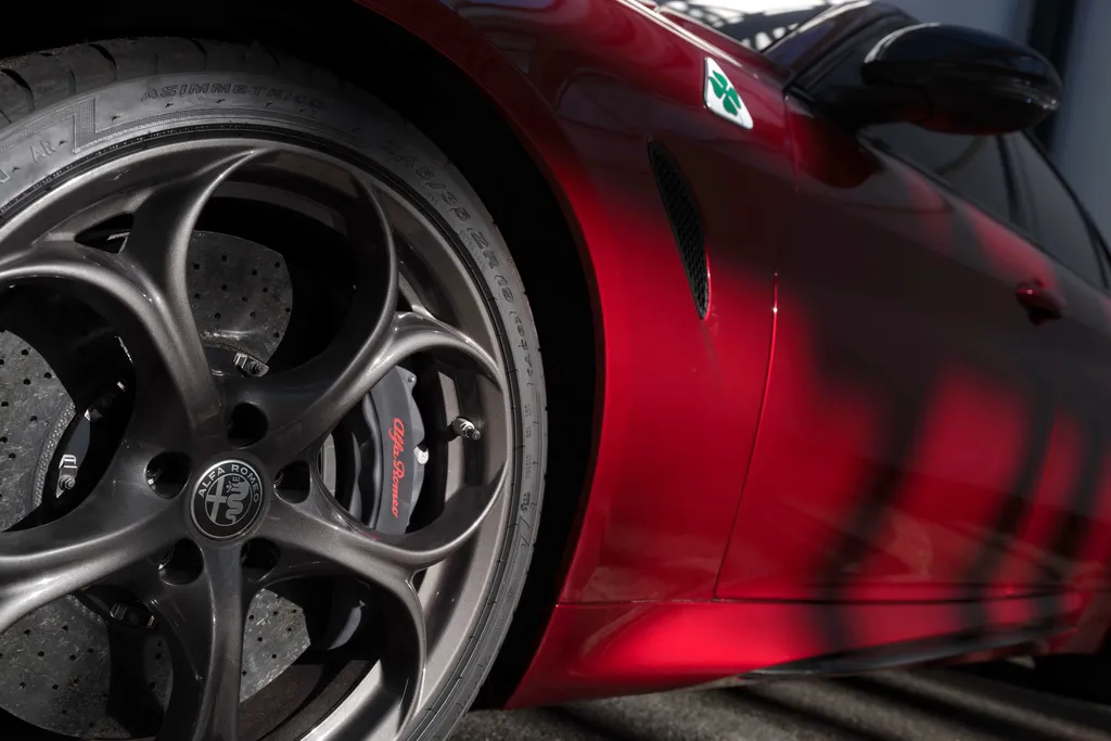Углеродное волокно используется в переднем шильдике, корпусах зеркал, отделке центрального туннеля и приборной панели. Еще одной особенностью является крыша из открытого углеродного волокна. В стандартную комплектацию входит карбон-керамическая тормозная система с красной надписью Alfa Romeo на полированном анодированном суппорте.