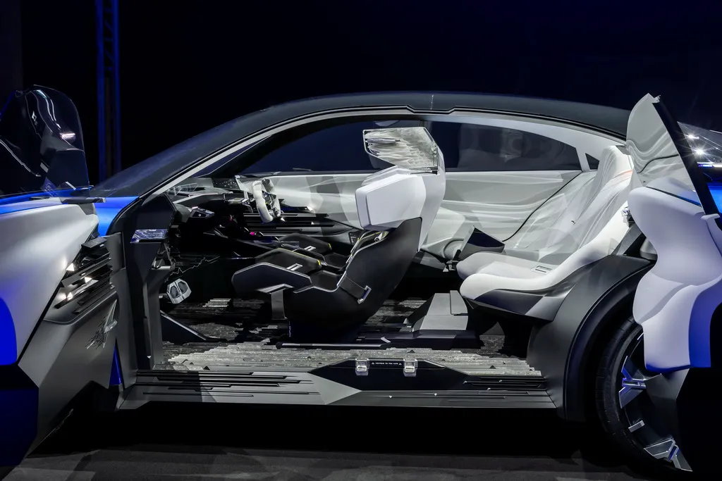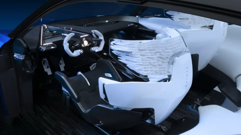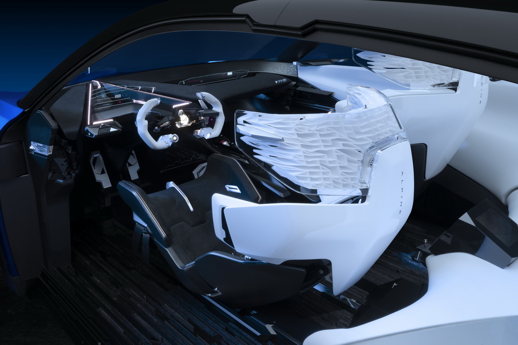 Не менее претенциозно выглядит интерьер концепта. По всей видимости его создатели черпали вдохновение в ледяных торосах и других снежных образованиях. Для отделки использованы контрастные черные и белые материалы. Концепт оснащен 4-мя креслами, а для водителя предусмотрен штурвал в стиле болидов Формулы-1. В свою очередь серийная будущая модель будет 5-местной, а на смену всей этой эклектике придут привычные материалы и формы.