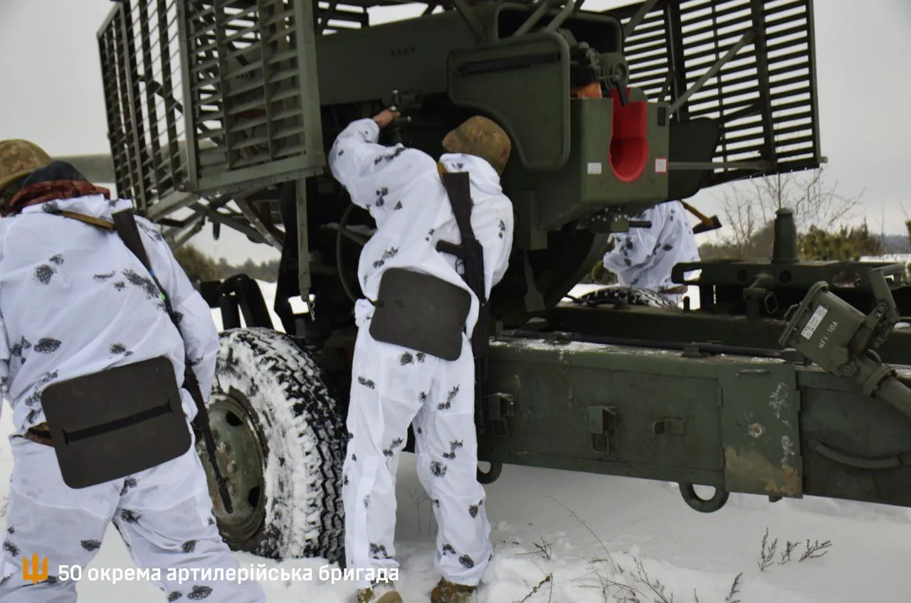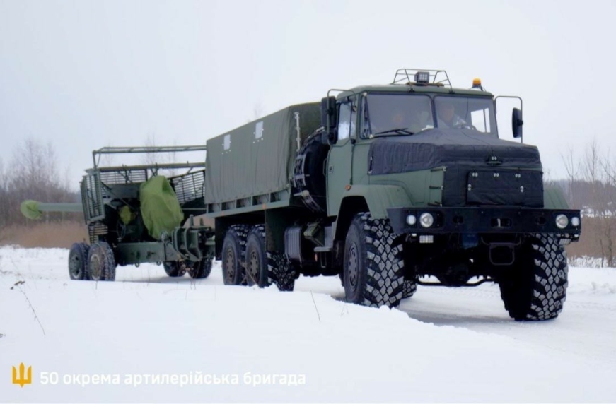 Во время учений 50 Отдельной артиллерийской бригады был замечен грузовик КрАЗ-6322 (6х6), который буксировал довольно интересную на вид гаубицу. Как сообщает Национальный информационный портал «Тиск», это прицепная 155-мм гаубица украинского производства 2П22 «Богдана-БГ», которую оснастили защитными решетами против дронов.