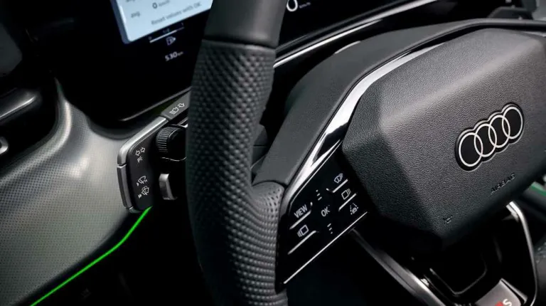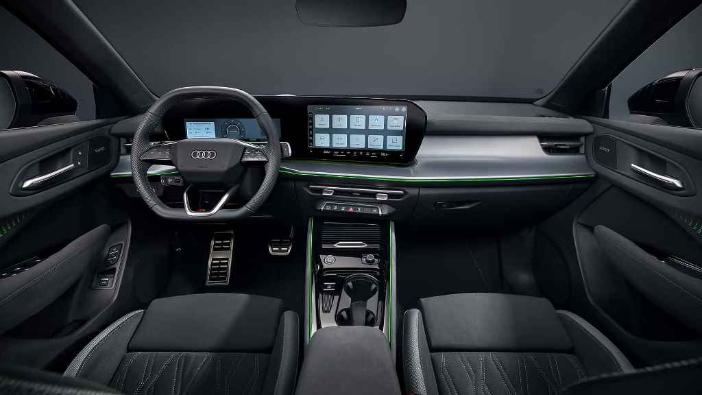 Салон также обновился. В оснащение вошла 11,9-дюймовая цифровая приборная и мультимедийная система с 12,8-дюймовым сенсорным экраном, работающим под управлением Android Automotive. Audi заявляет, что голосовой помощник использует ИИ. Есть также проекционный дисплей, а селектор передач авто перенесли с центральной консоли за рулевое колесо. Он уступил место на центральной консоли для двух портов USB, слота для беспроводной зарядки смартфона и двух больших подстаканников.