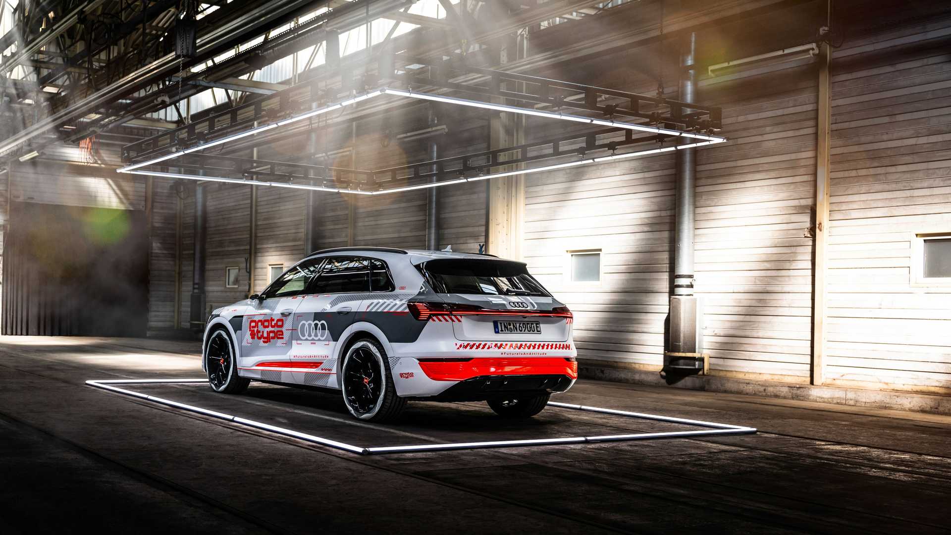 Прототип модели одет в яркий камуфляж, который позволяет рассмотреть некоторые изменения E-Tron. В частности, электромобиль получил новую заглушку на месте решетки радиатора и переработанные бамперы. Судя по ярким акцентам на кузове – это высокопроизводительная версия модели с тремя моторами.