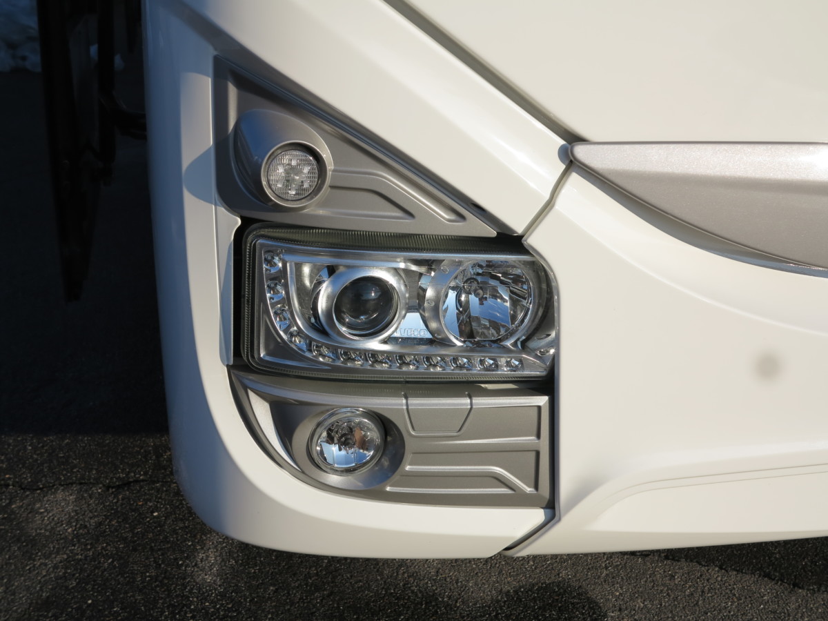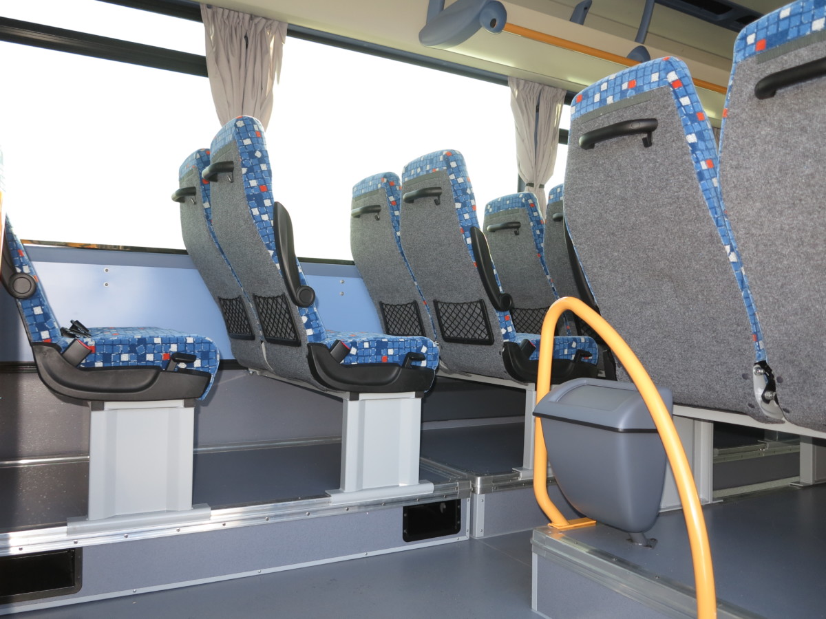 IVECO Сrossway может быть в нескольких исполнениях. Самое топовое – это Сrossway Pro. Это сугубо междугородный автобус повышенного комфорта. Он больше – длиннее и выше, и не имеет стоячих мест. Здесь установлены более удобные сиденья, с увеличенным шагом.