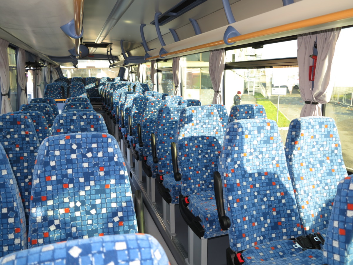 Это первый новый автобус данной модели в Украине. Отличительная особенность IVECO Crossway – площадка в центре салона, где размещены 4 кресла. Она сделана съемной, вместо нее устанавливаются поручни, и получается, что салон вмещает на 7 стоячих мест больше – всего 21. При этом мест для сидения – 49. Двигатель – 8,7-литровый Cursor 9 мощностью 360 л.с. отвечает самым строгим экологическим стандартам – Евро 6 step С. Поэтому при езде за границу сборы по дорогам будут еще меньше. Покупая такой автобус, вы хорошо экономите на его содержании.