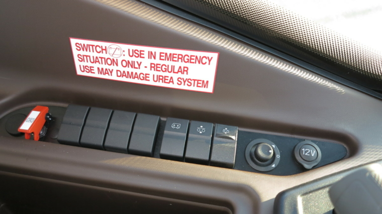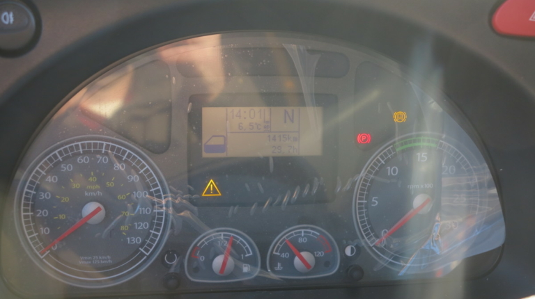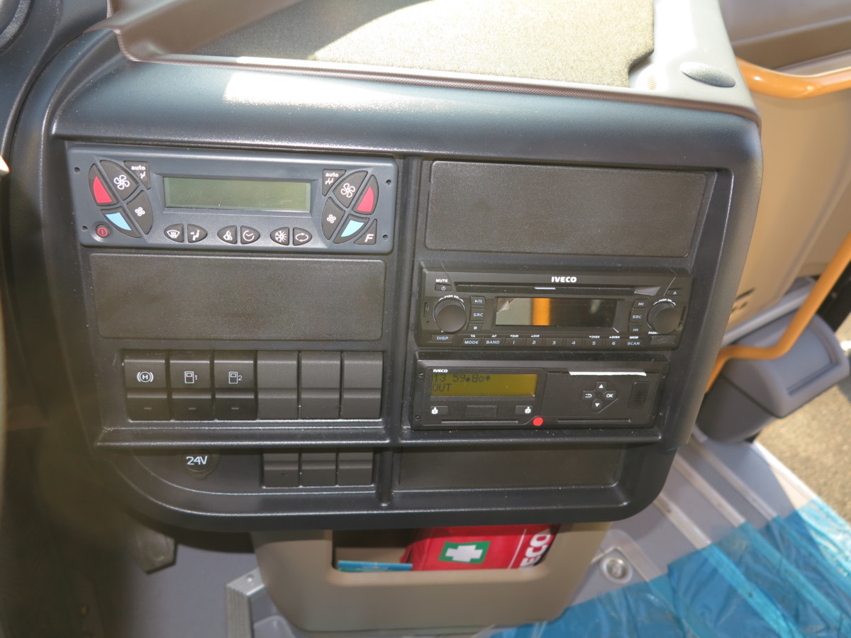 Трансмиссионный тормоз-ретардер – 6 позиций. ИВЕКО славится тем, что у них самый мощные горные тормоза среди конкурентов. Допустим, если двигатель 294 кВт мощности, то горный тормоз – порядка 280 кВт, что позволяет экономить ресурс колодок и т. д. При нажатии на педаль тормоза сперва подключается ретардер, а при более сильном – уже рабочие тормоза. В базовое оснащение входят автономный отопитель и кондиционер, а также подогреватели для фильтра-сепаратора и топливного насоса.