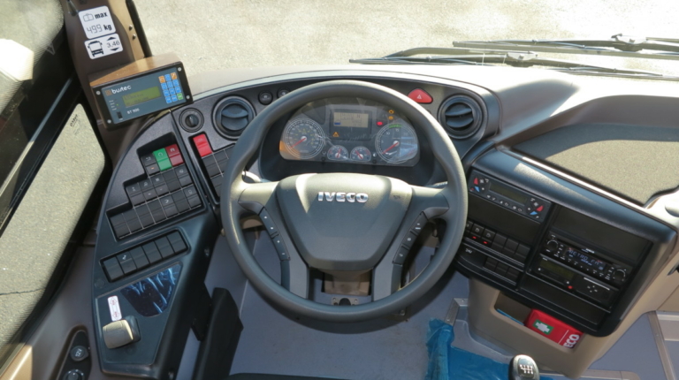 IVECO Crossway Line имеет общую длину 12,1 м. В салоне 53 мест для сидения, плюс водительское и 14 стоячих. Двигатель – Cursor 9 – 360 л. с. 1650 Нм. Коробка – базовая, ZF, 6-ступенчатая механика.