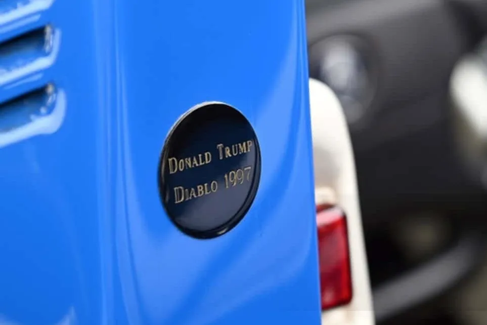 Помимо цвета автомобиль отличается специальной эмблемой на двери с надписью «Donald Trump 1997 Diablo». Автомобиль оснащен 5,7-литровый атмосферный V12 мощностью 492 л.с. Трамп продал машину летом 2002 года, после чего она несколько раз меняла владельцев. Последний владелец украсил машину декоративной аппликацией с силуэтом Трампа на заднем стекле.