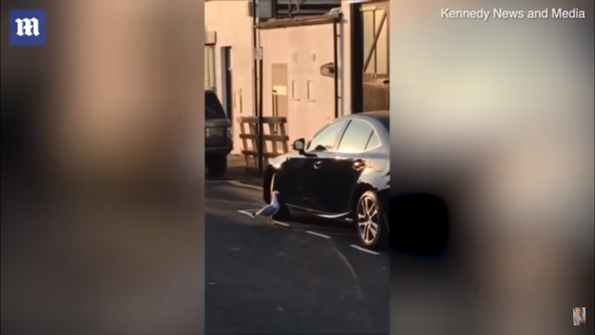 Агрессивная чайка заклевала дорогой автомобиль (видео)