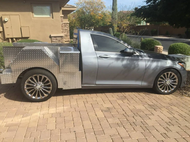 По словам владельца Genesis, он попал в сильную аварию, в результате которой задняя часть люксового седана оказалась фактически разрушенной. Поэтому 77-летний пенсионер решил переделать его в… пикап.
