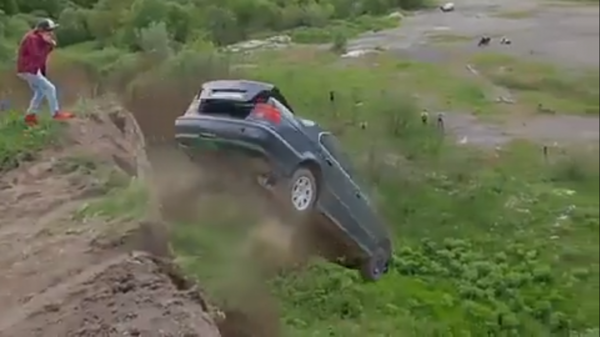 BMW 5-Series на еврономерах показательно скинули с обрыва (видео)