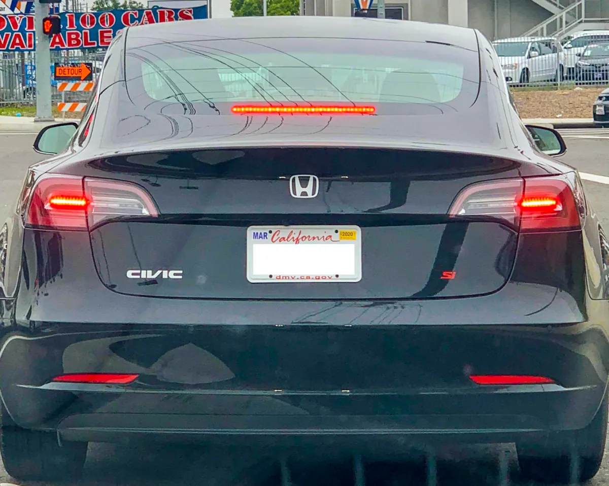 У этого владельца Tesla явно фантастическое чувство юмора. Как вы можете видеть из изображений, опубликованных в Twitter, он (или же она) переименовал cвой Model 3 в Honda Civic. Все, что для этого понадобилось - соответствующий шильдик и логотип.