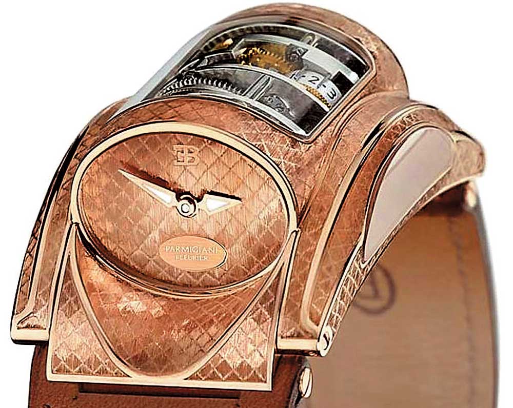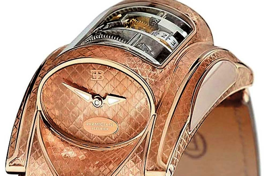 Столь изящная модель, как Bugatti Veyron, заслуживает достойного прощания. Скорое завершение производства суперкара компания Bugatti при поддержке часовых дел мастера из Швейцарии – фирмы Parmigiani Fleurier отметит новой версией подарочных часов Type 370 Centenaire, состоящей всего из двух экземпляров. Centenaire выполнены из 18-каратного розового золота и платины, в них каждая деталь уникальна. Часы разработаны так, чтобы водителю было удобно следить за временем, не снимая руки с рулевого колеса. Гравировка сделана вручную мастером Филиппе Боденманом, который потратил на каждое изделие по 300 часов, а кожаный ремешок создан по спецзаказу модным домом Hermes – старым партнером Bugatti. Стоимость столь уникального чуда техники не сообщается. Впервые часы Bugatti Type 370 были выпущены в 2006 году.