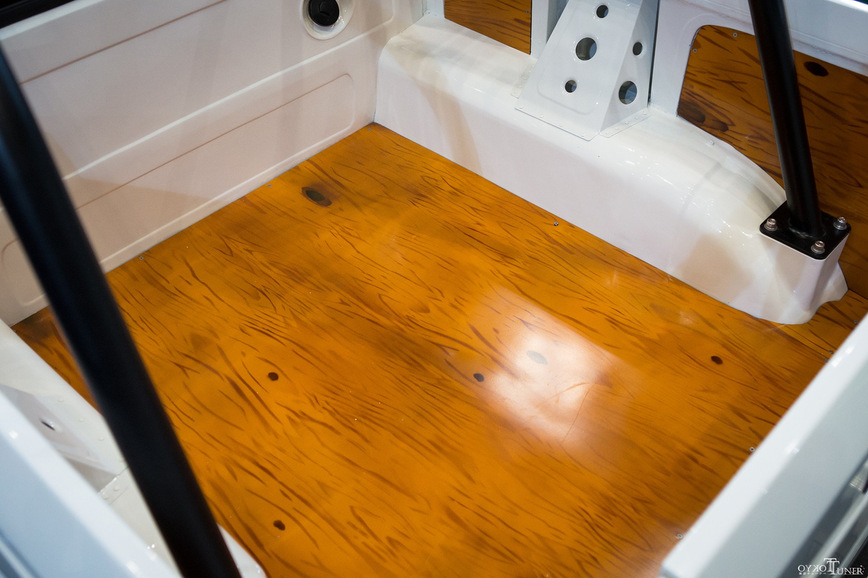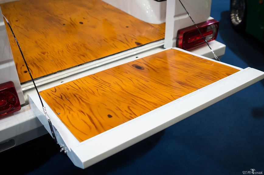 Студенты разрезали два Suzuki Jimny, удлинили раму и установили дополнительную ось. Грузовая платформа была сделана вручную, а пол отделали краской, имитирующей структуру дерево.