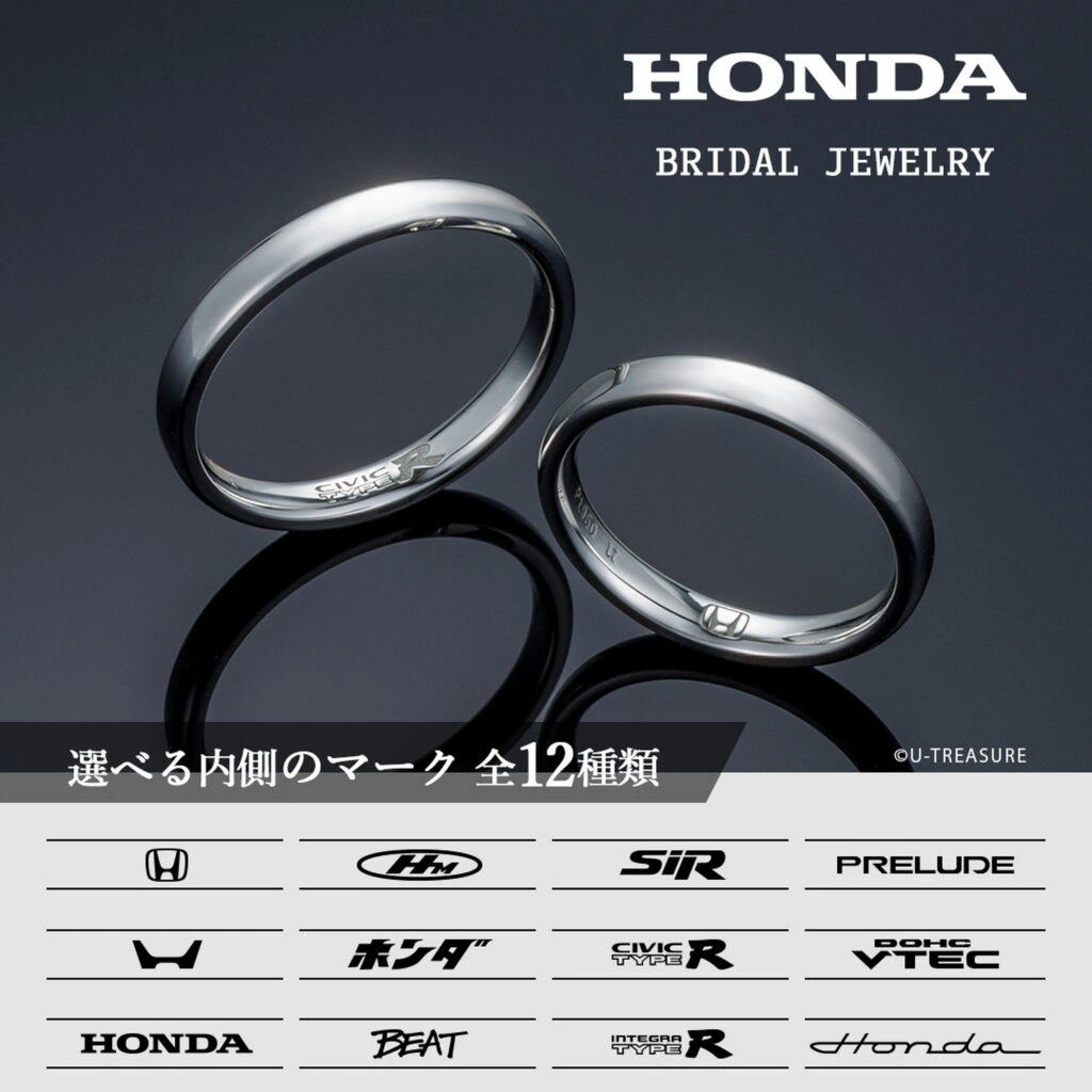 Японская ювелирная компания U-Treasure предлагает парам обручальные кольца с выгравированными на них официально лицензированными логотипами Honda. Изготовленные из платины, снаружи они выглядят как обычные кольца, но внутри все куда интереснее.