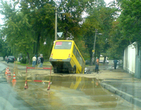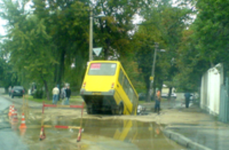 16 сентября рано утром в районе Совок Соломенского района г.Киева маршрутка провалилась под асфальт.