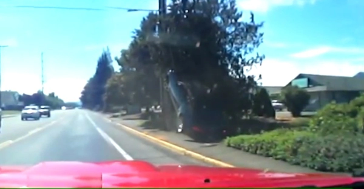 Машина буквально встала на дыбы и выбраться из нее не представлялось возможным. Наказание настигло беспечного водителя.