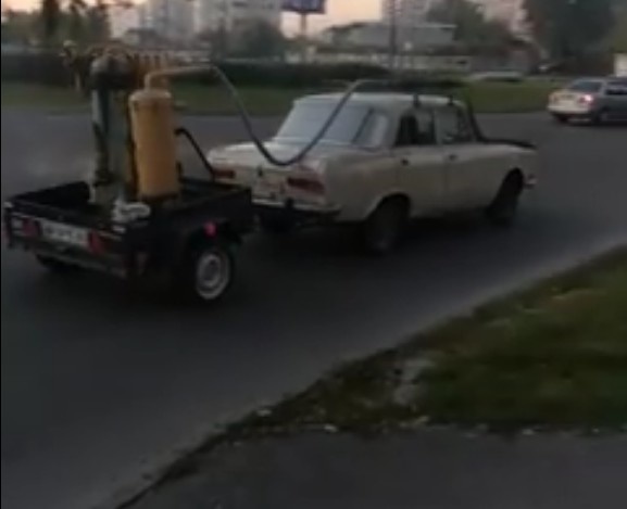 На украинских дорогах засняли авто с необычным самодельным ГБО