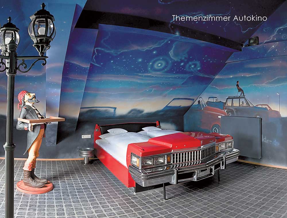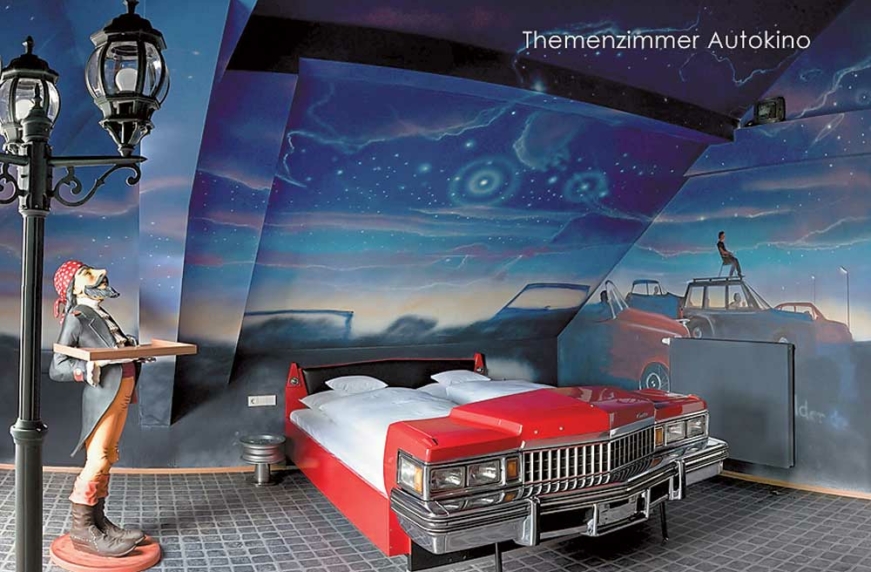 В пригороде Штутгарта открылся оригинальный отель V8. Для постояльцев доступны 34 комфортабельных номера, оформленных в «автомобильном» стиле. Каждая деталь, каждый квадратный метр здесь посвящен автомобилю. Фасадом для кроватей служат передние части знаменитых моделей Cadillac, DKW, Mercedes-Benz, Volkswagen и т. д. Стены украшены многочисленными фотографиями и картинами на автомобильную тематику, колпаками колес, выхлопными трубами, рулями, приборными панелями и сотнями других запчастей. Гостиница является частью информационно-развлекательного комплекса Meilenwerk, который включает автомобильный музей, реставрационные мастерские, уютный ресторан и выставочные павильоны.