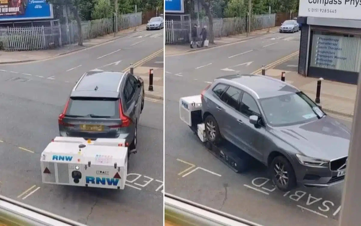 This video shows a robot in Liverpool removing an illegally parked Volvo XC60 from a disabled parking spot before delivering the SUV to a nearby tow truck.pic.twitter.com/PkaDAq0if3