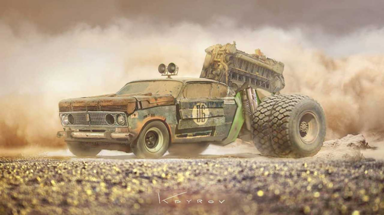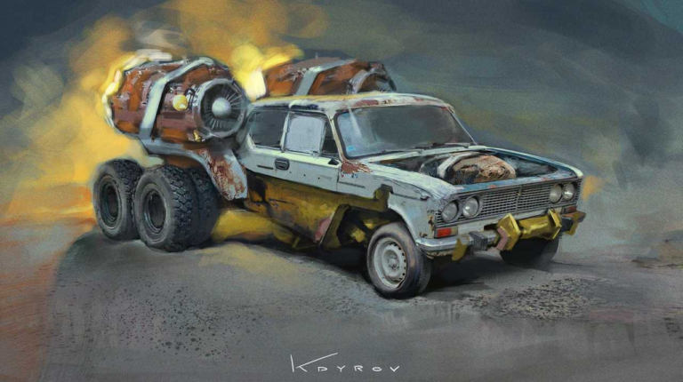 Изображения, найденные ресурсом CARakoom, показывают, как могли бы выглядеть старые авто в постапокалиптические времена. Художник Данияр Кдыров продемонстрировал собственный ответ на вопрос, которого, кажется, никто не задавал. Но выглядит все это довольно занимательно.