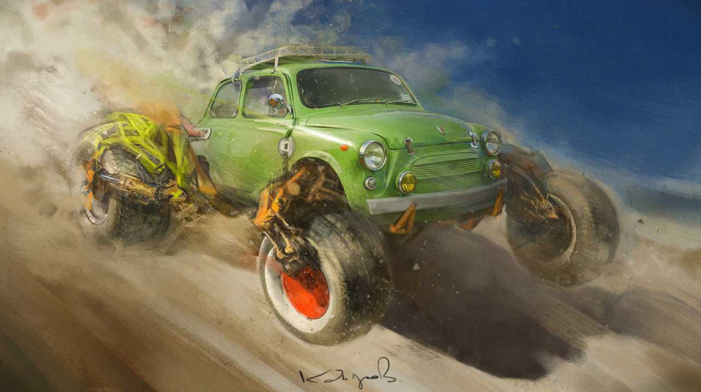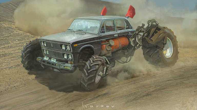 Несомненно, все эти Лады, Волги и Запорожцы отдают чет-то вроде атмосферы киновселенной Безумного Макса. Здесь есть и обезображенные до неузнаваемости кузова, и оргомные колеса, и даже огнедышащие двигатели. Все в рамках жанра.