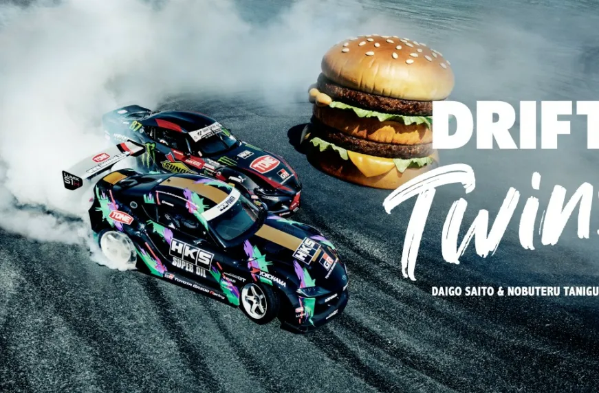 Спортивное подразделение Toyota Gazoo Racing опубликовало рекламный видеоролик, созданный совместно с McDonald’s. В нем Supra GR, под управлением дрифт-чемпионов международной серии D1 Дайго Сайто и Нобутеру Танигучи, крутят “пончики” вокруг огромного гамбургера, коробки с наггетсами и картошки фри.