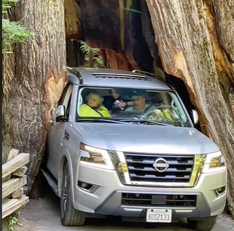 Мужчина выехал на туристическую лесную дорогу, чтобы полюбоваться местными красотами. На одном из ее участков есть препятствие в виде огромной секвои. В дереве прорубили тоннель, чтобы люди и машины могли свободно перемещаться. Однако Armada оказалась слишком велика.